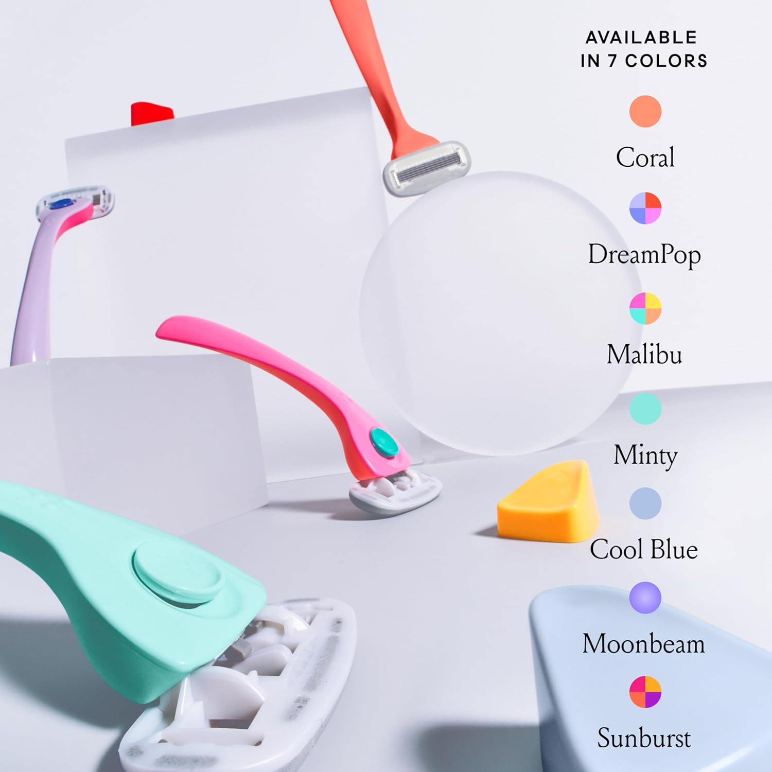 Billie Razors for Women Shave Kit – Women’s Razor + 4 x 5-Blade Razor Refills + Magnetic Holder – Coral