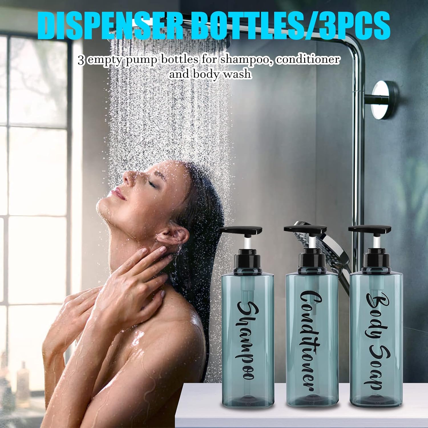 - 【High-Quality & Modern Design】 Upgrade your bathroom with AUMIO’s shampoo dispenser for shower! Made from extra-thick, crack-resistant PET plastic, these shampoo bottles are built to last. The clear blue square design adds a touch of elegance, while the silkscreened labels (Shampoo, Conditioner, Body Soap) ensure easy identification. Perfect for modern homes, hotels, or as a thoughtful gift!