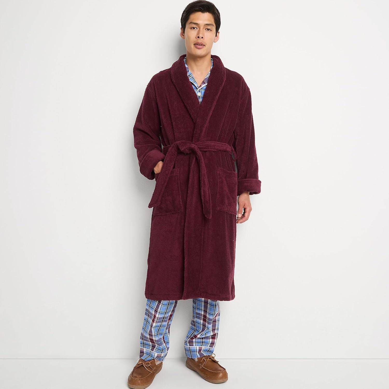 • Functional Design: Shawl collar adds a timeless spa robe feel; wraparound style with adjustable kimono belt closure for a no-gap fit; long sleeves offer full coverage and cozy warmth; calf-length cut makes it a perfect housecoat for men