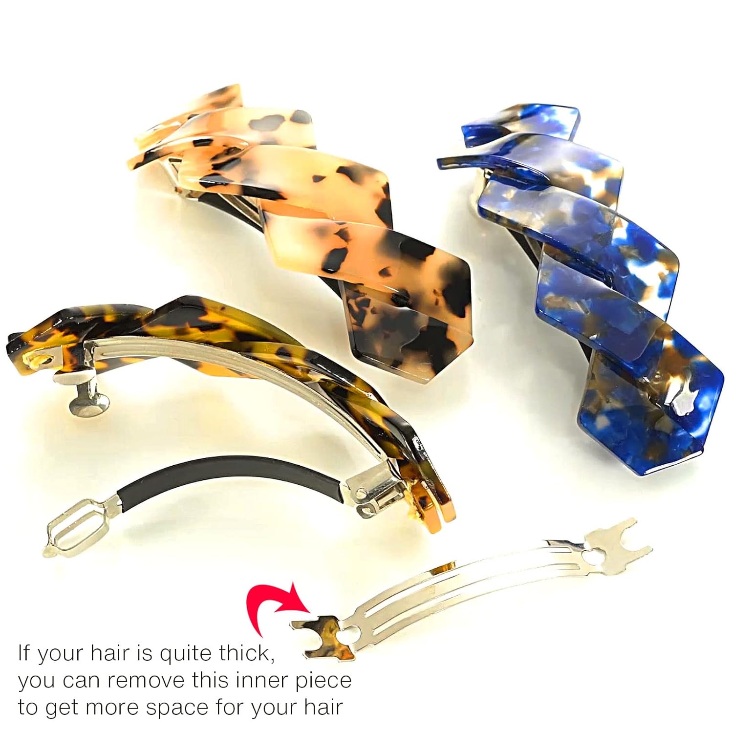 Hair Barrettes Large French Clips Wide Hair Clasp for Women Thick Fine Hair Accessories - Blue Tortoiseshell - 3Pcs (Navy Blue, Brown)