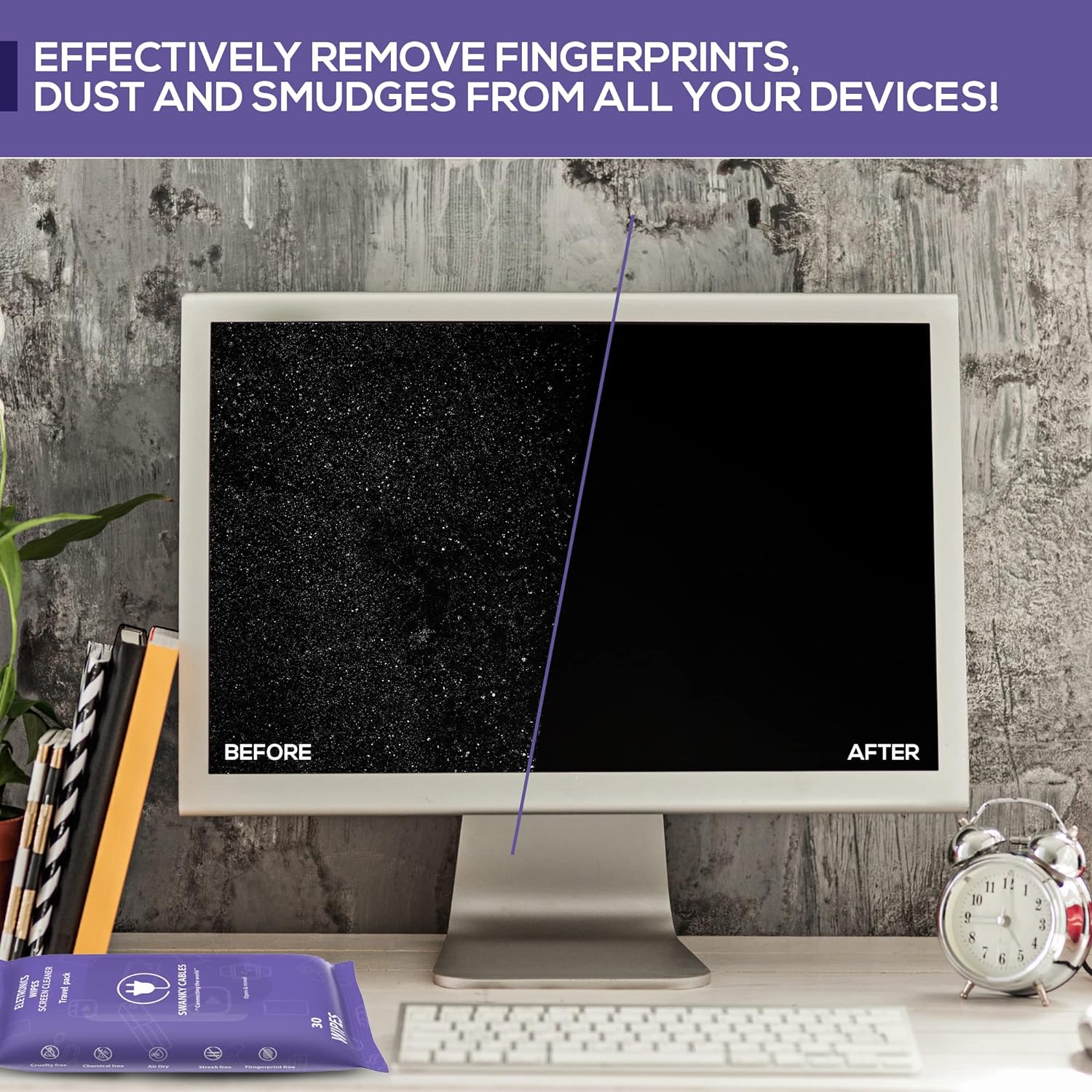 Screen Cleaner Wipes: Electronic Wipes for Screens - Computer Screen Wipes for Lens, Phone, Tv Screen and Monitor Cleaning - Tech Wipes & Microfiber Cloth (Soft Wipes, 30 Count)