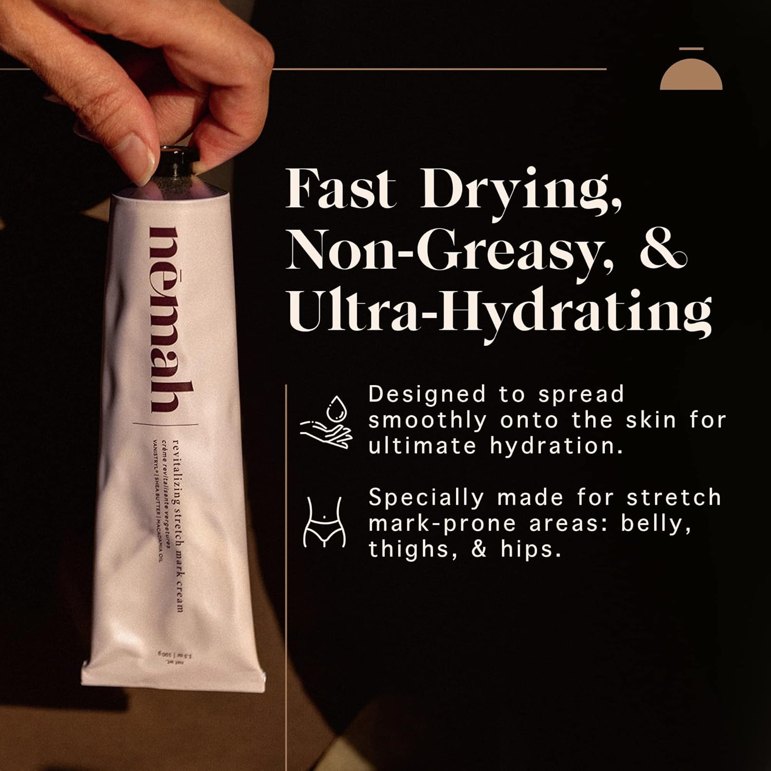 - How to Use: On clean skin, gently massage Nemah stretch mark cream onto belly, thighs, hips, and other areas prone to stretch marks; for best results, use morning and night; for external use only; use only as directed