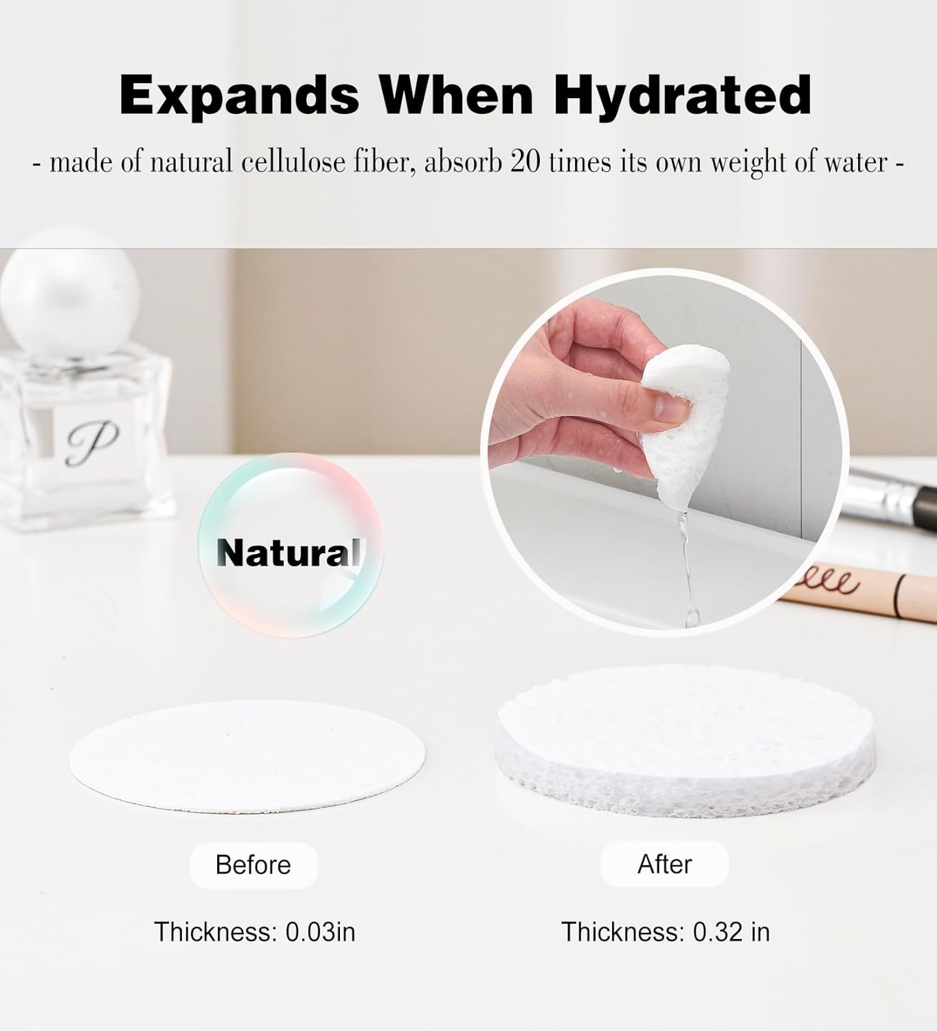 - 【Package & Size】: 50-count little round cellulose facial sponges. Pink+White, 2.8" dia. x 0.32" thick after hydrated