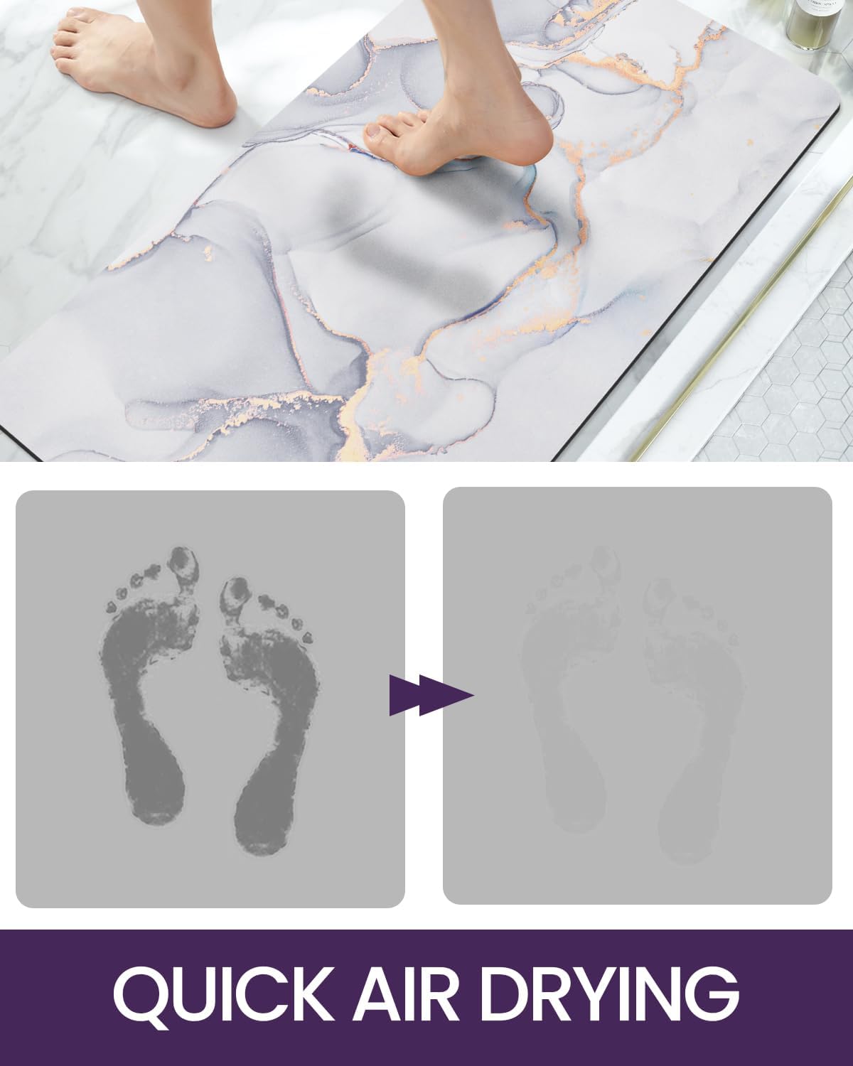 DEXI Bathroom Mat Ultra Thin, Non Slip Bath Rug for Shower Floor, Absorbent Quick Dry Marble Bathmats Low Profile, 16x24, Light Grey