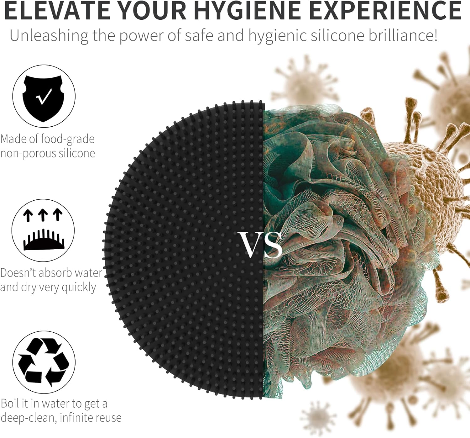 Silicone Body Scrubber, BEAUTAIL Shower Bath Scrubber, More Hygienic Than Traditional Loofah, Lather Nicely, Long Lasting, Gentle Exfoliating Brush for Women Men Baby Sensitive Skin, 1 Pack, Black