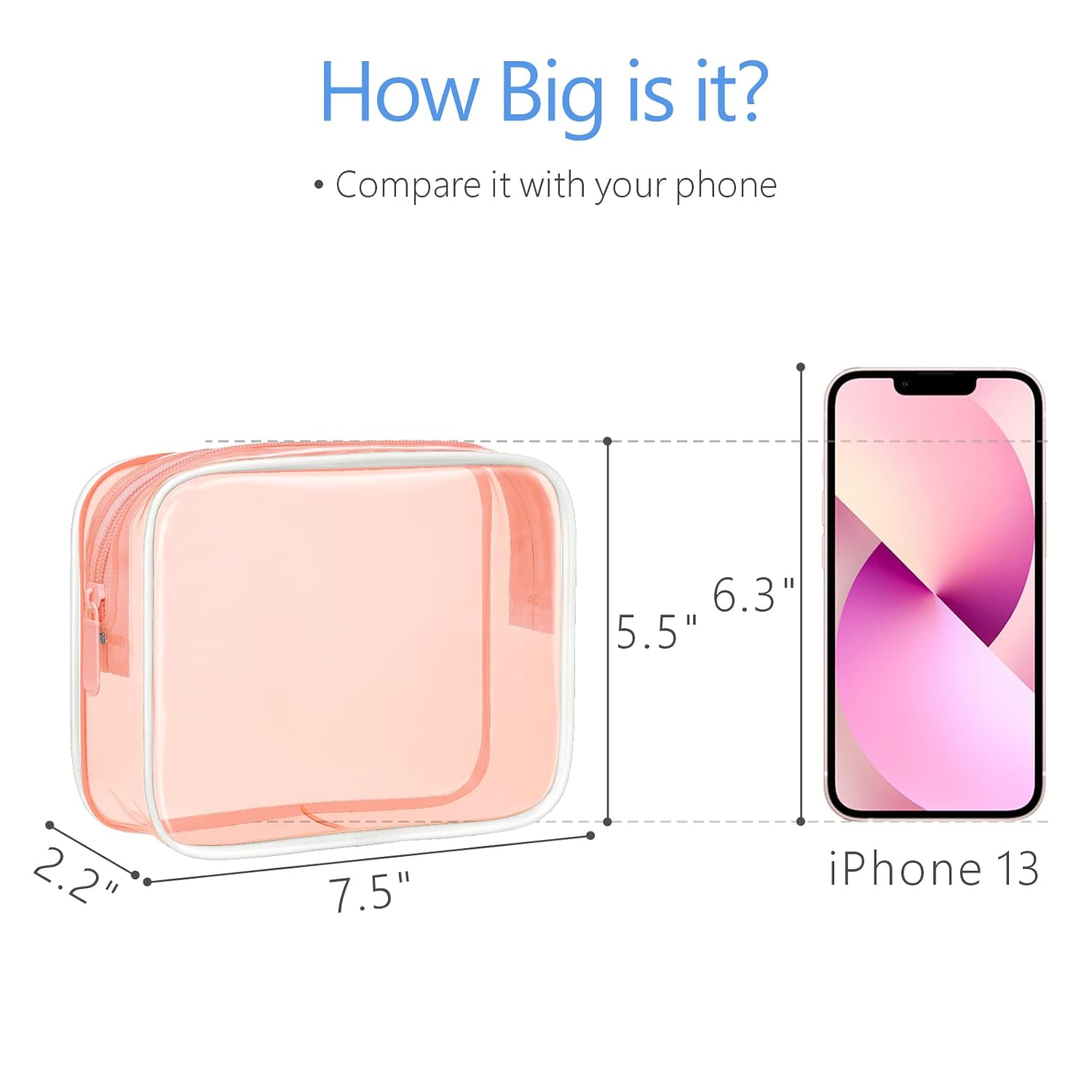 - 【Crystal Clear & Durable】This clear makeup bag is made with thick 0.5mm PVC so TSA agents can scan contents instantly; Reinforced stitching keeps your shampoo bottles safe even when your luggage gets tossed