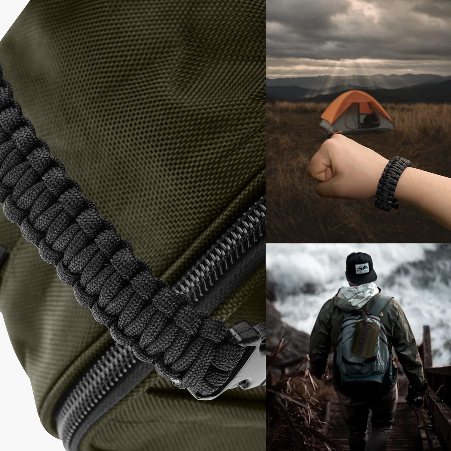 - DESIGNED FOR ANY OCCASION â Tactical inspired design that not only serves you in the hotel room but also in the unknown wilderness. The side molle webbing allows you to add tools & gadgets for quick access, or even pouch for additional carry capacity. The handle is made from detachable 550 paracord and whistles for emergencies because anything can happen. Heck! We also give a FREE Tactical Carabiner.