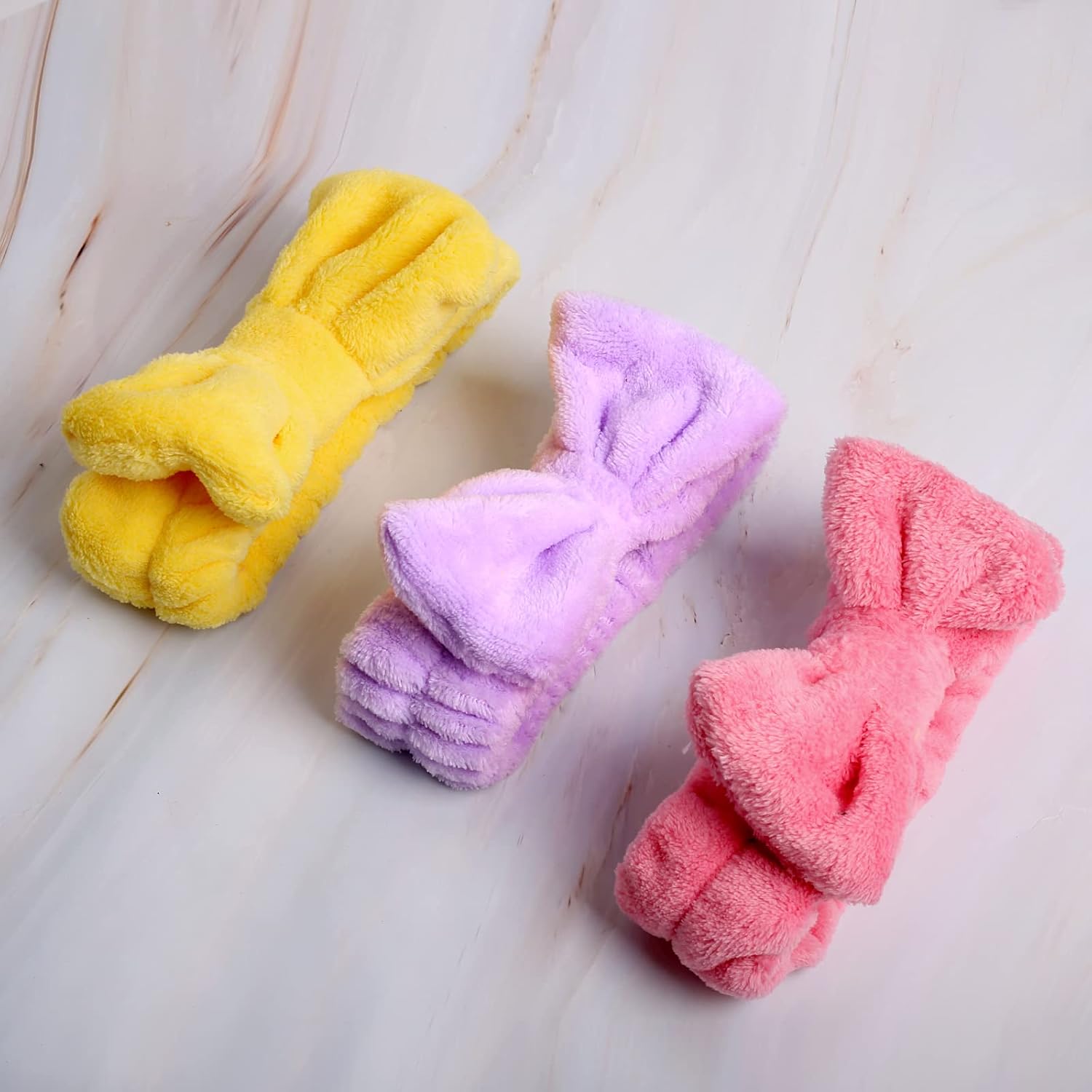 - 3 Vibrant Colors: Package included 3pcs makeup headband in beautiful color-Brilliant yellow, sweet watermelon pink, and charming purple. After wear spa headband, your hair no longer is wet or sticky with the mask residue. And you will happy with these headband and something as simple as this has made life so much easier.