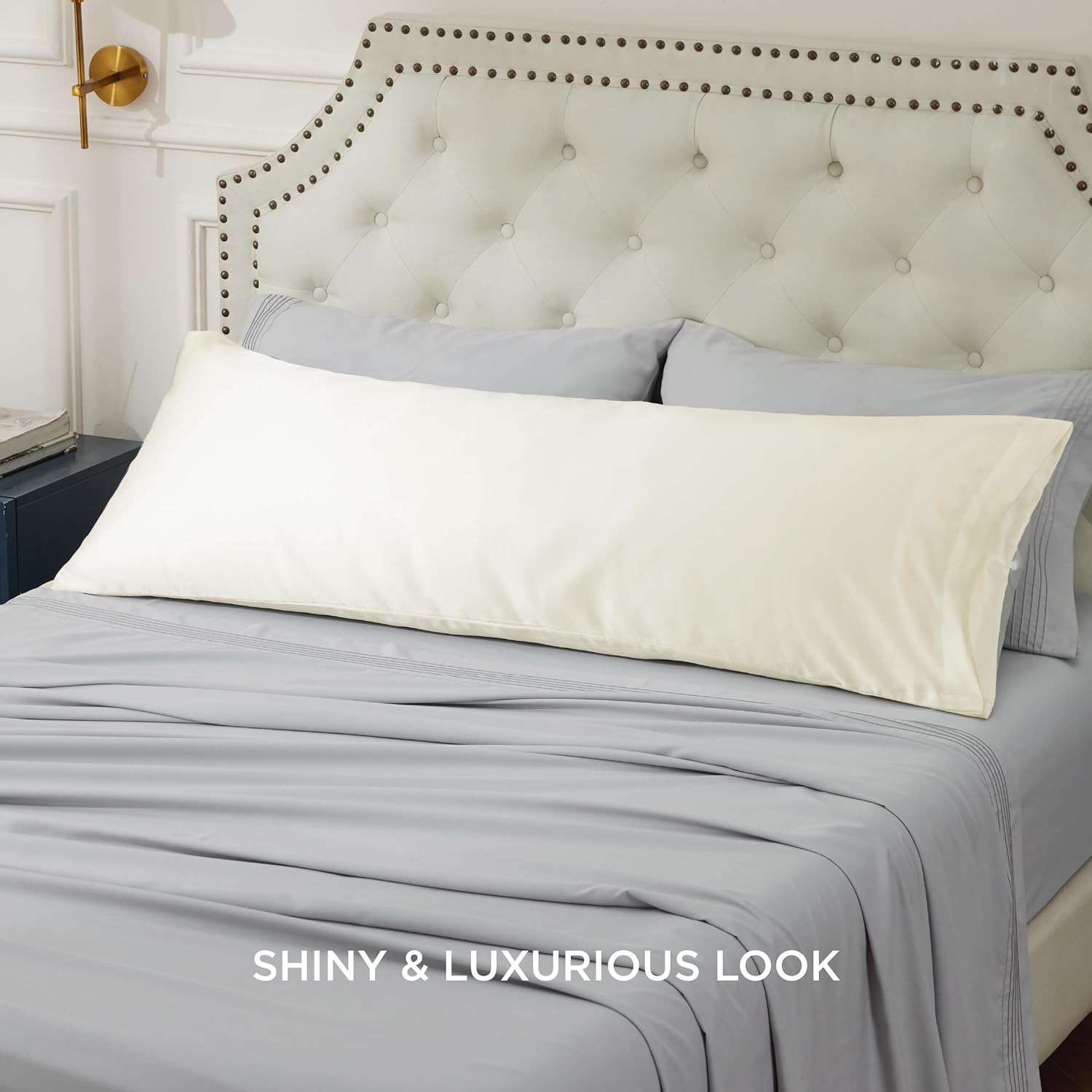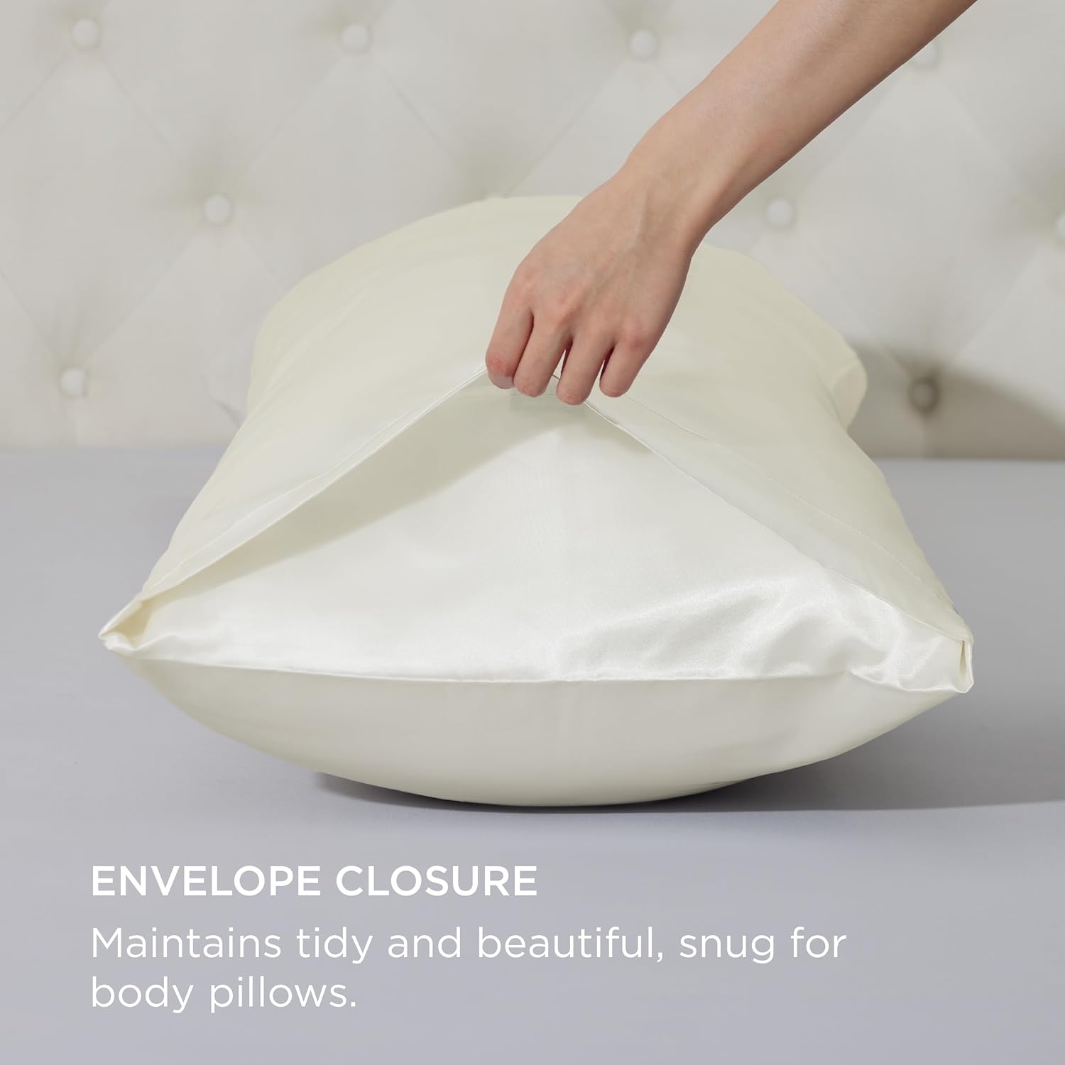 Bedsure Body Pillow Cover 20x54 Inches - Ivory Satin Similar to Silk Pillowcase for Hair and Skin, Cooling and Silky Long Body Pillow Case Cover with Envelope Closure, Gifts for Women Men