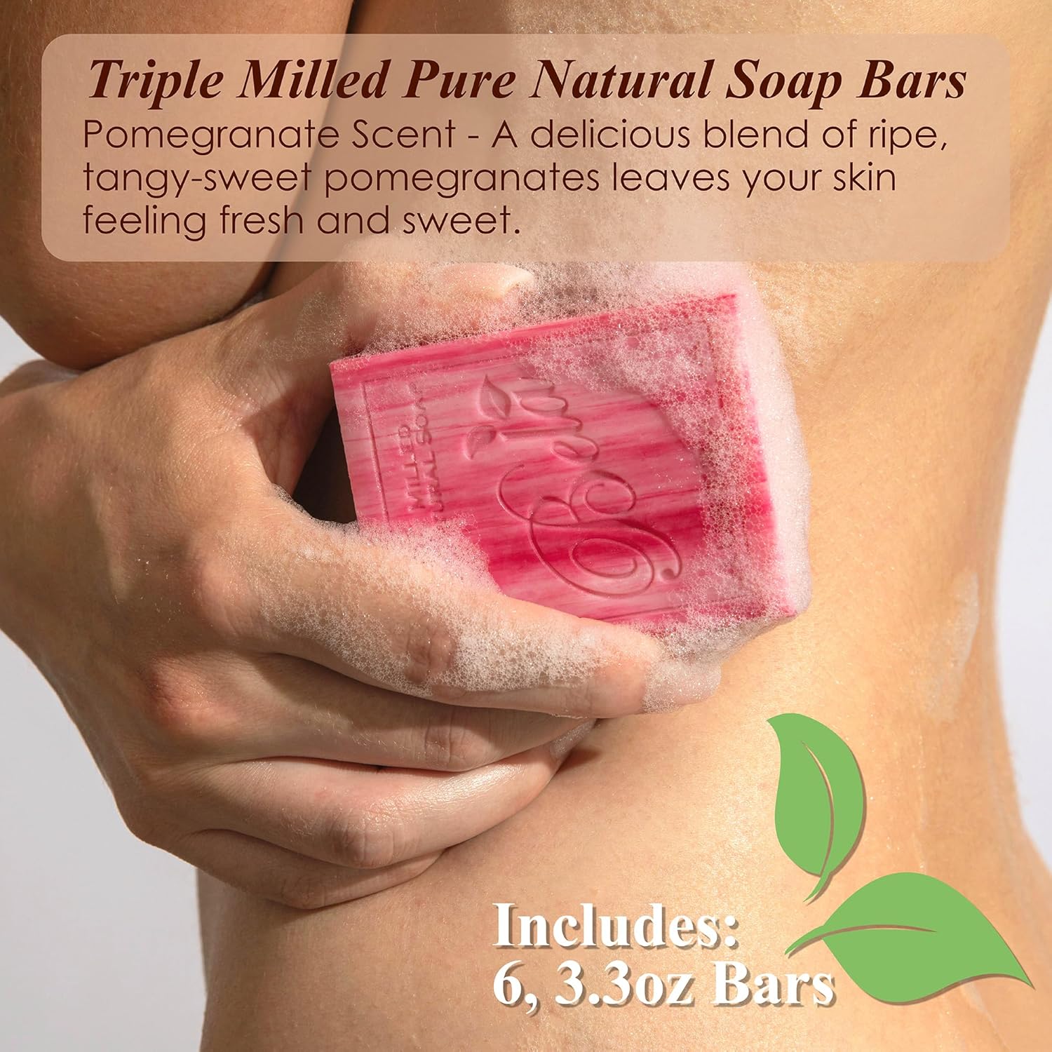 BELA Pomegranate Soap 3.3 OZ Pack of 6, Long Lasting French Triple Milled Bar Soap with Organic Shea Butter, Hand, Face and Body Wash Bar, Made in Australia