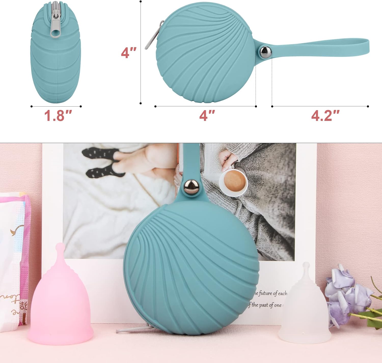 - đ ăLeak-proof Silicone Materială- Our soft menstrual cup case is made of leak proof silicone material, comfortable hand feeling, durable and not easy to deform. You can put the used menstrual cups into the silicone carrying pouch without worrying about your handbag or backpack being dirty. (Please Note: The zipper is not leak-proof.)
