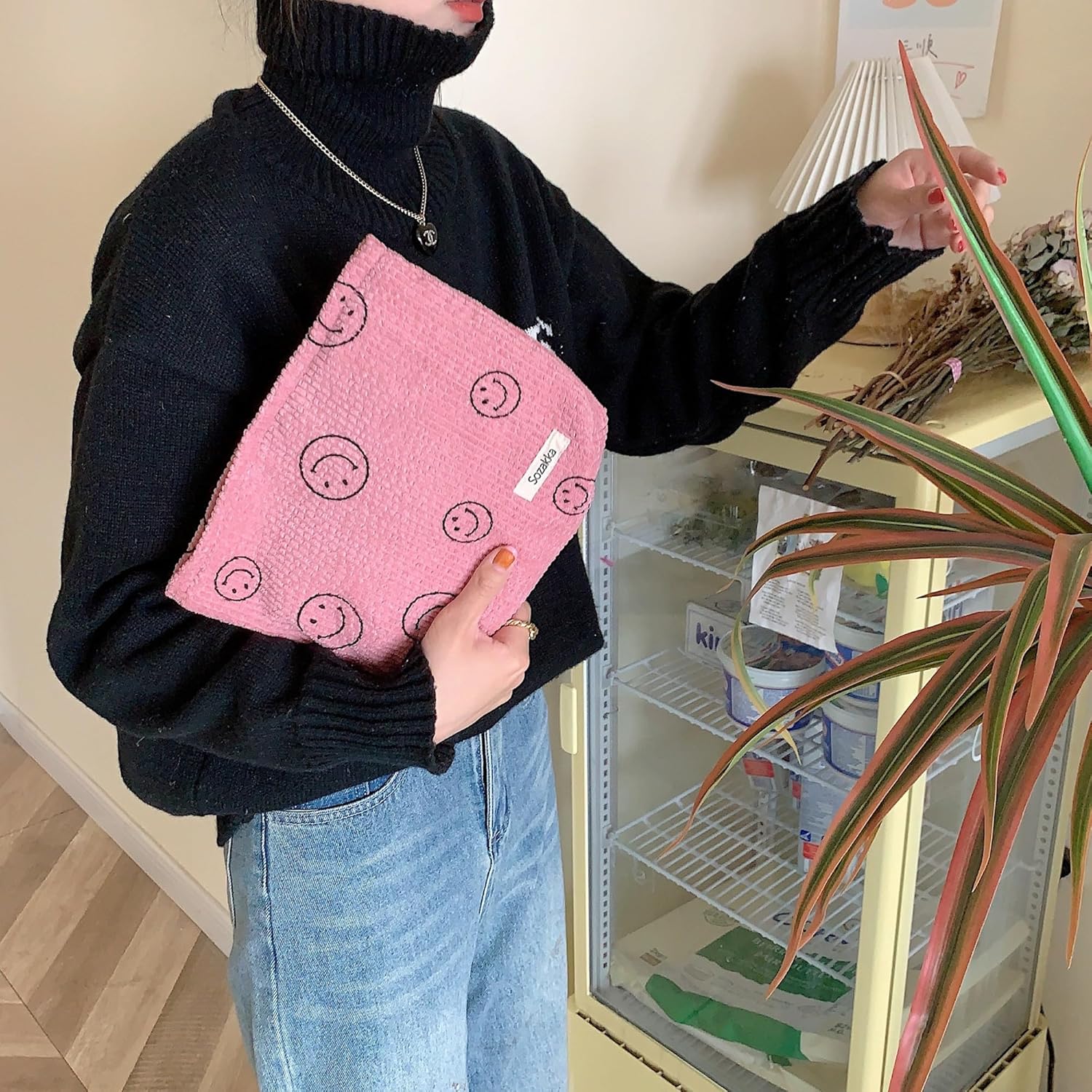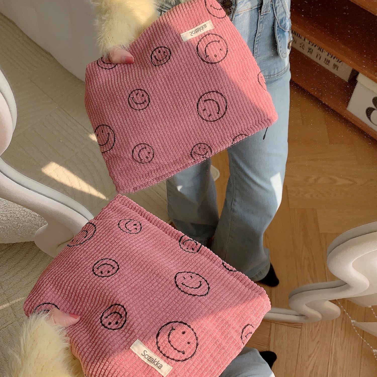 Cosmetic Bags for Women - Corduroy Cosmetic Bag Aesthetic Women Handbags Purses Smile Dots Makeup Organizer Storage Makeup Bag Girls Case Bags (A-Pink)