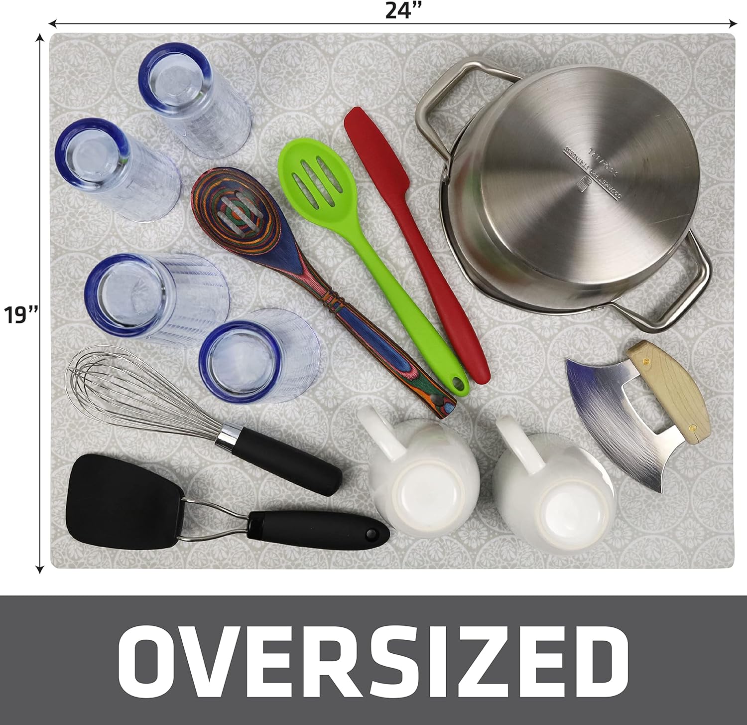 - (XL SIZE) KEEPS COUNTERTOPS CLEAN AND DRY (PREMIUM LOW-PROFILE DESIGN): The low-profile design (0.13” thick), adds stability when drying stemware or other delicate items and allows moisture to evaporate quickly. The XL size is great for air-drying dishes, glasses, silverware, pots, pans, and fruits and vegetables.