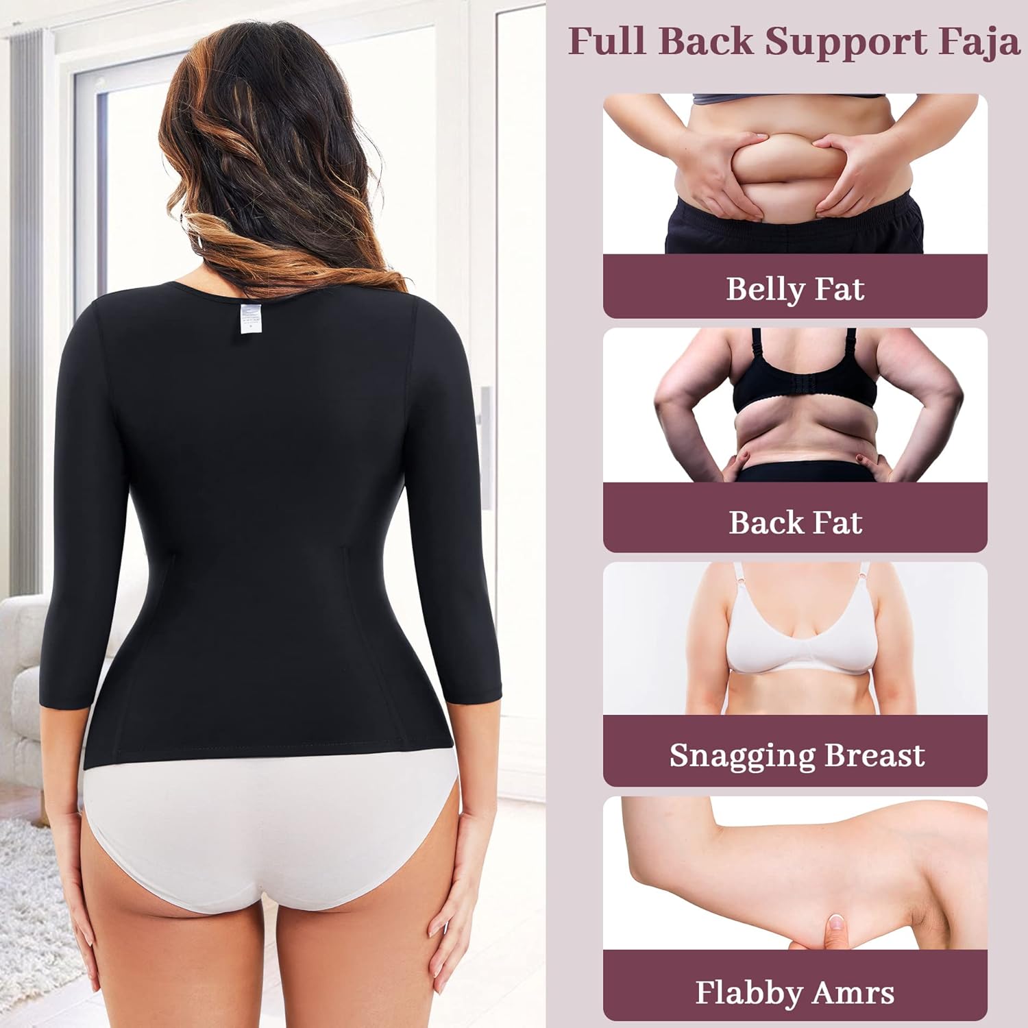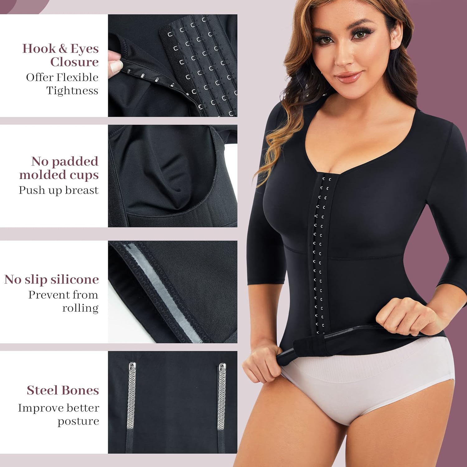 • 3/4 Sleeve Arm Slimmer: Seamless arm shaper offers upper arm compression to smooth arm fat, tight flabby arm& loose skin, remove swelling, speed up healing process from post lipo. Arm girdles for women it’s comfy& offer firm support still allow flexibility in the joints, reduce arm lines. post surgery compression garment has 2 flexible bones on the back to keep your back straight& improve your posture. It completely covers your back, gives firm back support, smooths back bulge& relief back pain.
