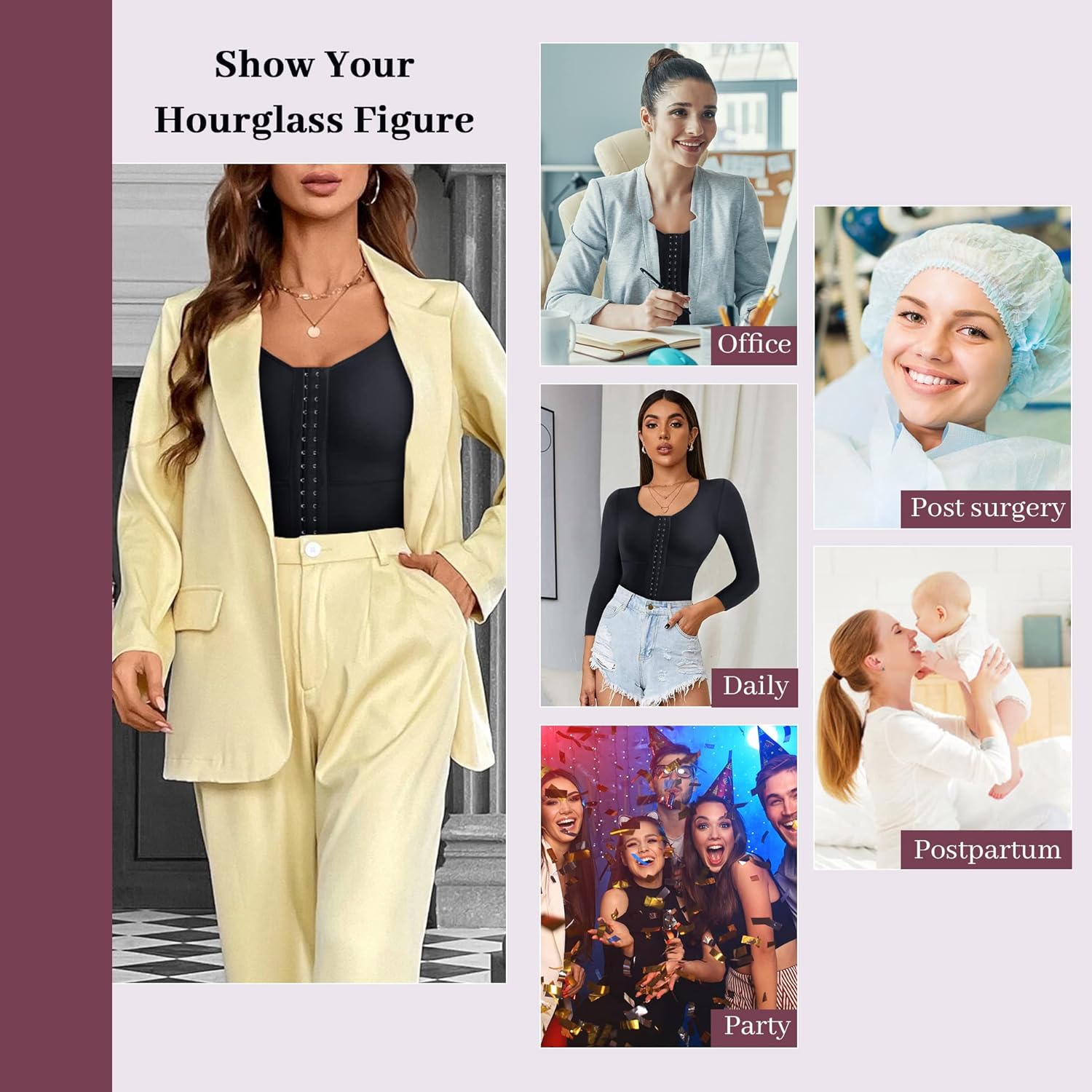 • No Pads Molded Cups: corset shapewear breast section use unique design, with no pads and wires, won’t hurt your incision but hold up your breast instead of flatting them. The pads around the cups of waist trainer corset offer comfy support and and help to lift up your chest, tone up your armpit fat to create a slimmer figure. You can wear your own bra with this women waist trainer shapewear top or not. It can effectively get people healed from chest surgery and prevent breast from snagging.
