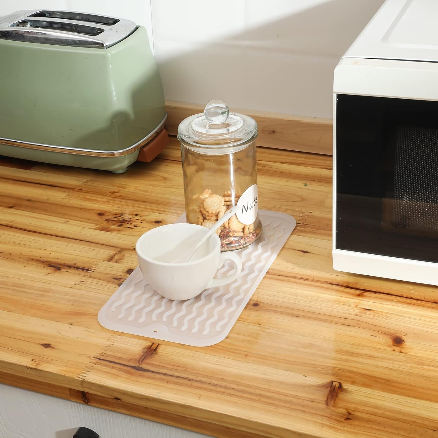 Silicone Dish Drying Mat for Multiple Usage,Easy clean,Eco-friendly,Heat-resistant Silicone Mat for Kitchen Counter or Sink,Refrigerator or Drawer Liner Translucent S 12 inches x 6 inches