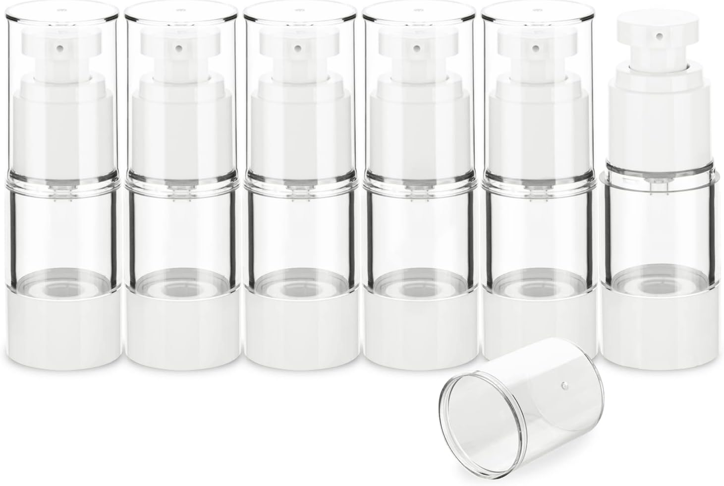 0.5OZ/15ML Clear Airless Pump Bottles, Lotion Dispenser Travel with Pump, Vacuum Plastic Travel Size Lotion Bottle for Foundation, Creams, Cosmetic(6 Pack)