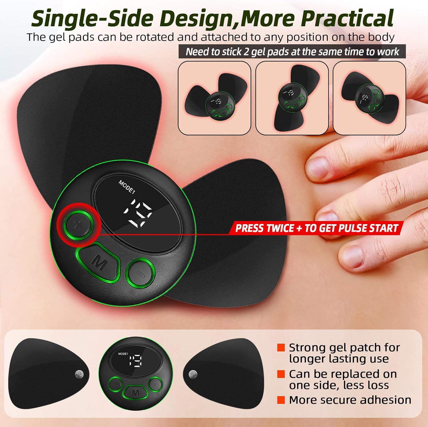 - 4 Reusable Electrode Pads: This electric body massager need to stick 2 gel pads at the same time to work .The pads are durable, breathable, excellent self-adhesive performance, comfortable and easy to clean . Ideal for sore and aching muscles in waist,back,neck,arm,leg,shoulder and foot