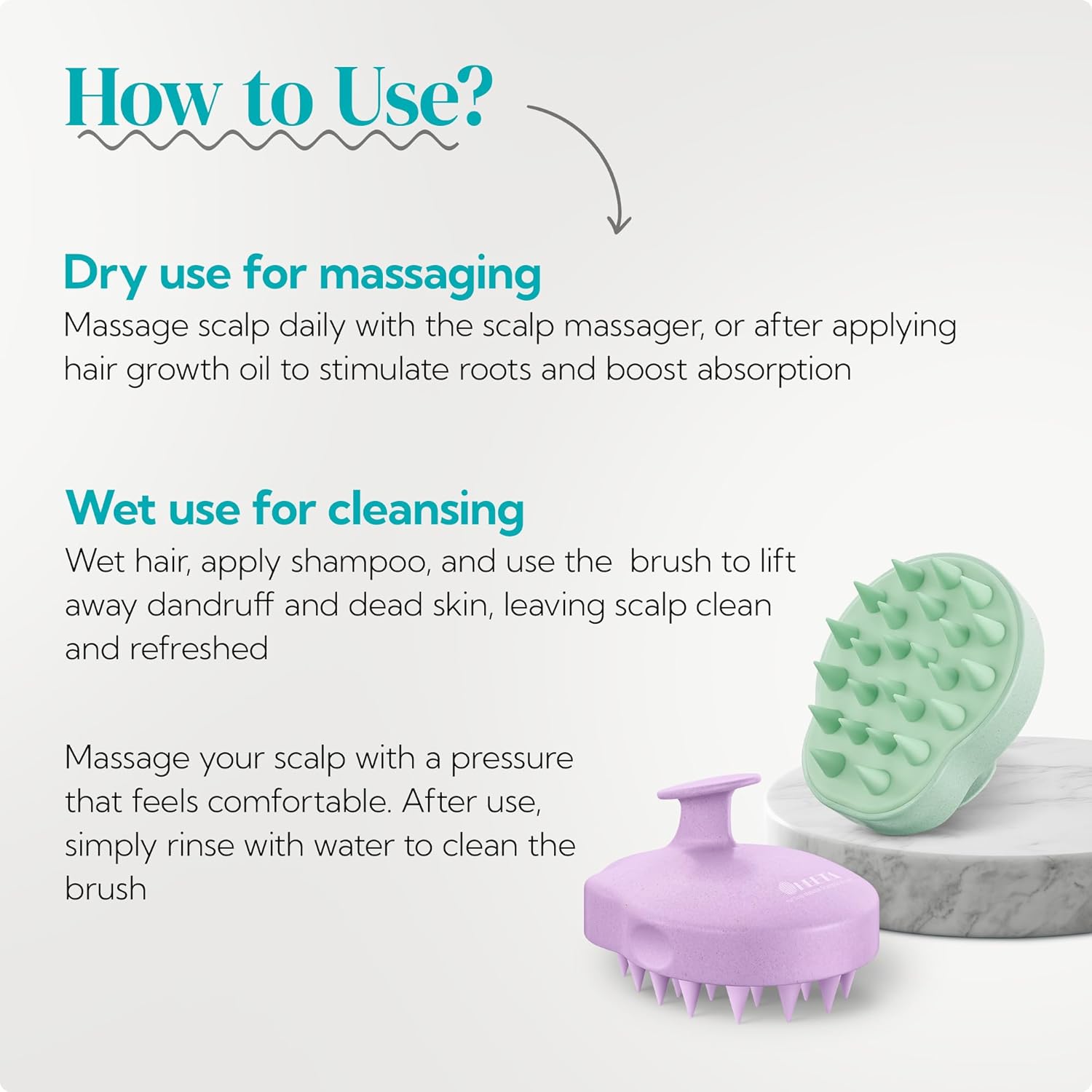 HEETA Scalp Massager 2 Pack for Hair Growth, Soft Silicone Bristles to Remove Dandruff and Relieve Itching, Scalp Scrubber for Hair Care Relax Scalp, Shampoo Brush for Wet Dry Hair, Purple & Green