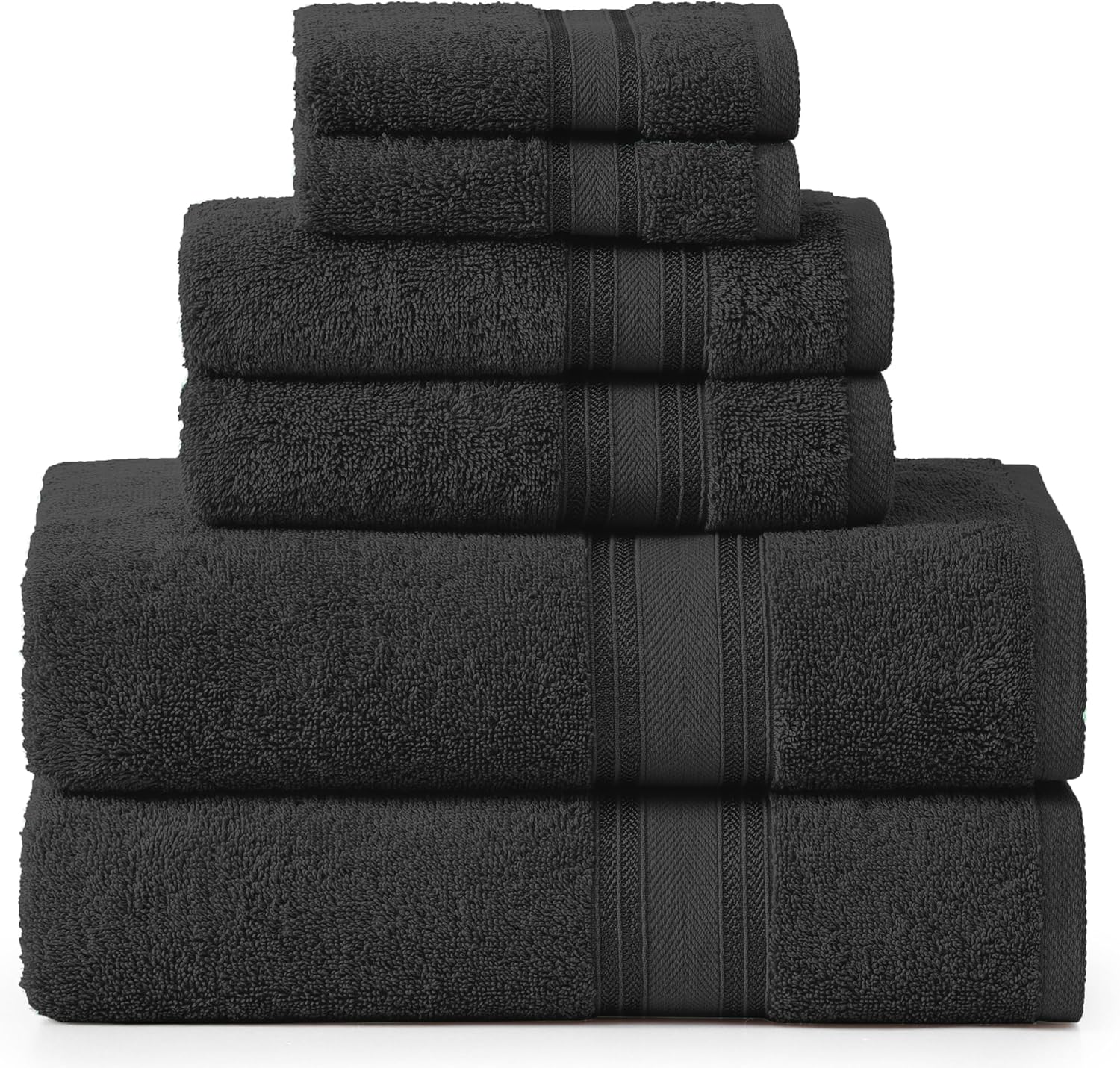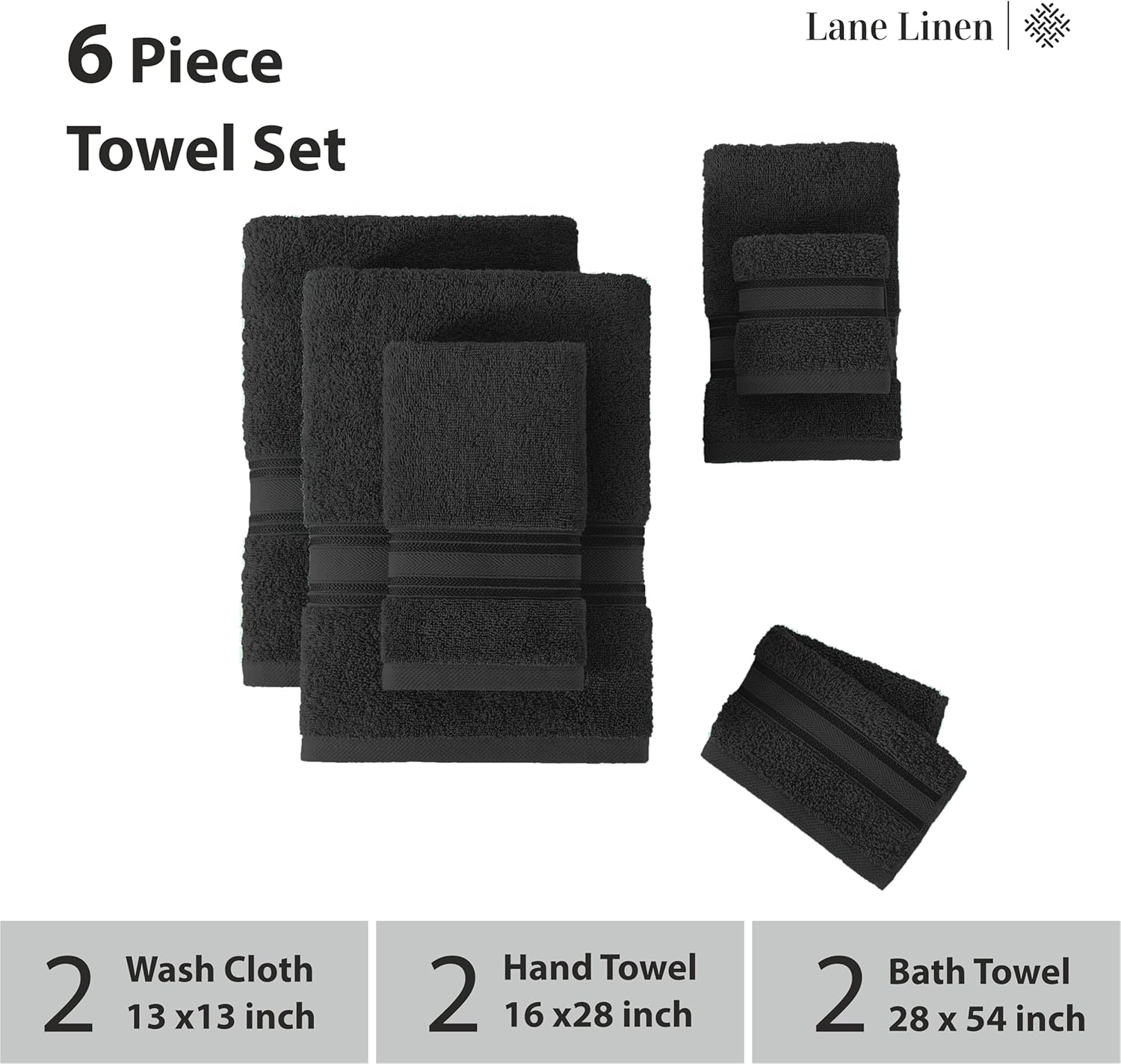 Lane Linen Luxury Bath Towels Set - 6 Piece Set, 100% Cotton Bathroom Towels, Zero Twist, Quick Dry Shower Towels, Absorbent Bath Towel, Super Soft, 2 Bath Towels, 2 Hand Towels, 2 Wash Cloths - Black