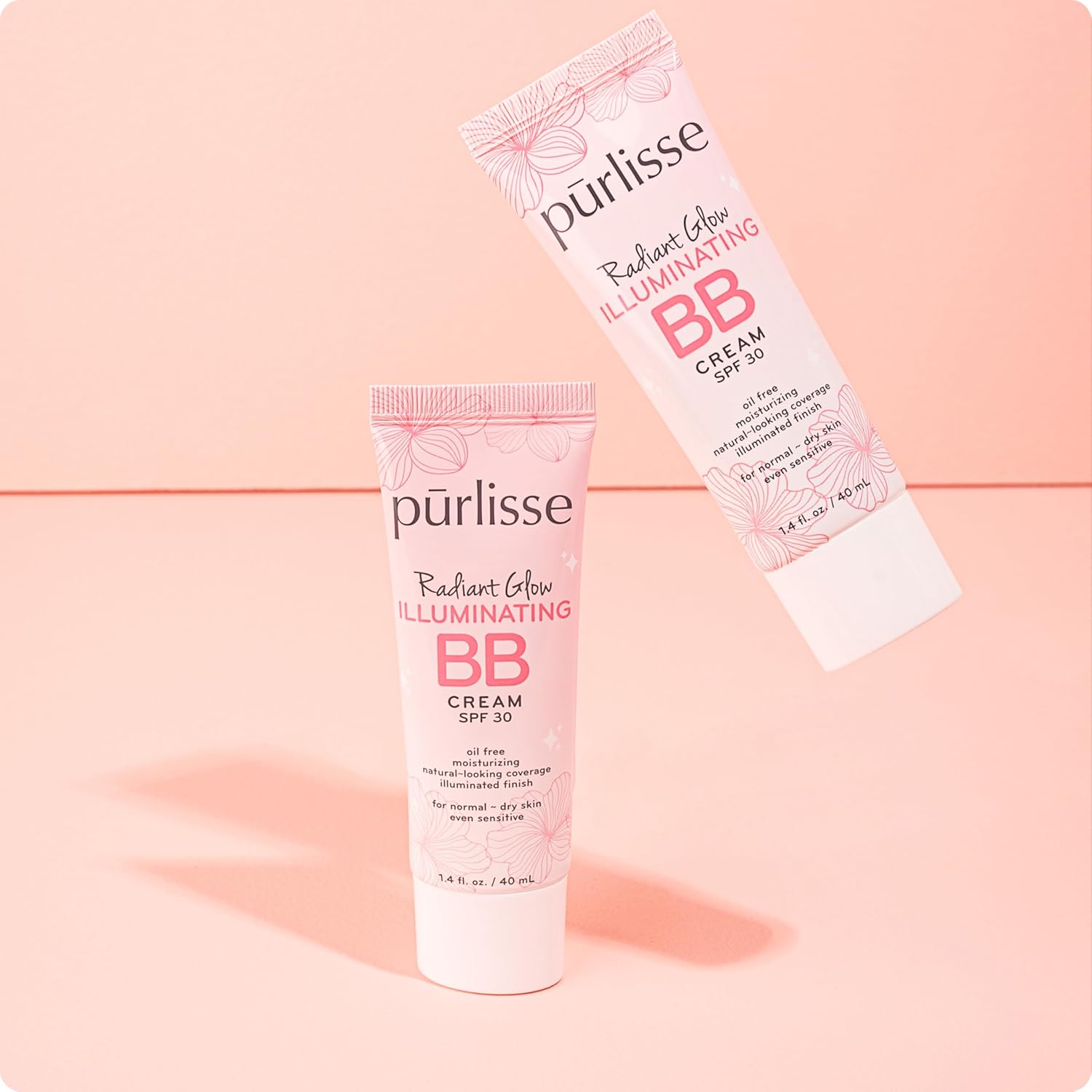 pūrlisse Radiant Glow Illuminating BB Cream with SPF 30 - Glow BB Cream Enriched with Goji & Hawthorn Berry for Dewy Skin - Helps to Improve Skin Texture & Radiance - Tan Deep (1.4 oz)