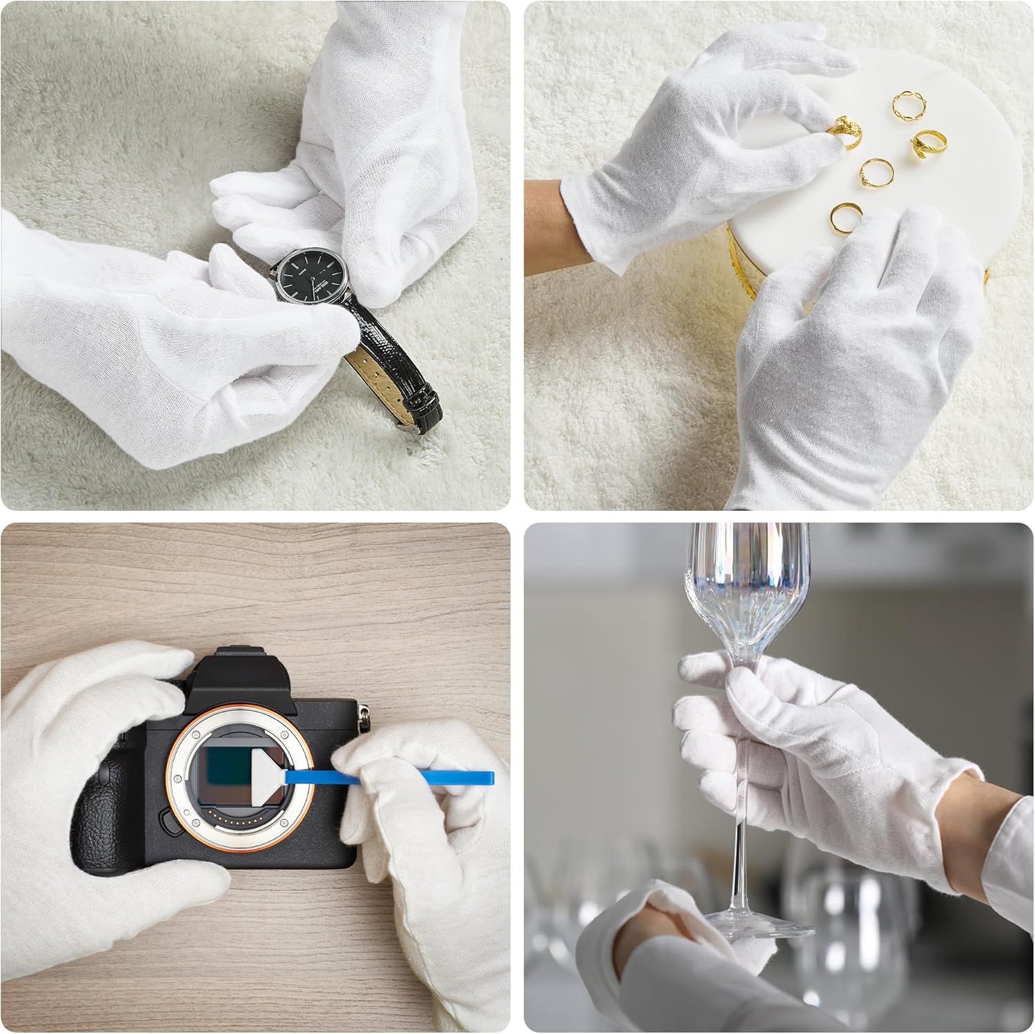 - VERSATILE USAGE: When doing cleaning, housework and driving, wear cotton gloves to keep your hands clean. The white cotton gloves also suitable for using as serving gloves, costume gloves and glove liners.