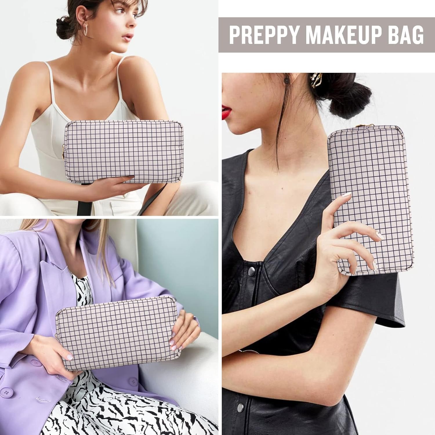 Nylon Small Makeup Bag for Purse, Cute Checkered Makeup Bag Preppy Cosmetic Zipper Pouch Purse, Waterproof Portable Travel Toiletry Bag Clutch Make Up Brush Bag Organizer for Women Girls(Checkered)