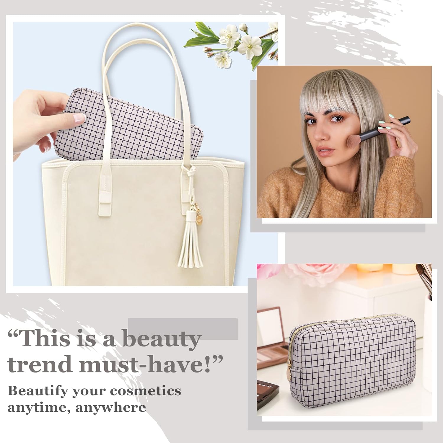 - ❤【Multiple Sizes & Colors】Large, Small, Mini, or Slim, we have it all! Cosmetic bag has a variety of patterns to choose from: pink hearts, black houndstooth, black and white grids, pink and blue grids for you to choose. Nylon makeup bag for purse can be used for travel, outdoors and organization, it can be used as a coin pouch, purse bag, travel pouch, clutch and more.