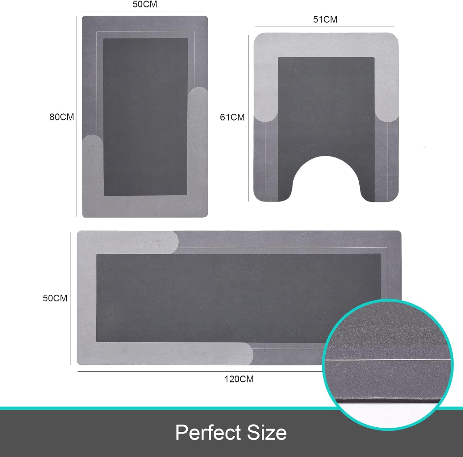 HelloTree 3PCS Bath Mat Rug Rubber Non Slip Quick Dry Rug Sets Super Absorbent Thin Bathroom Rugs Fit Under Door Grey Washable Bathroom Floor Mats for in Front of Bathtub, Shower Room, Sink