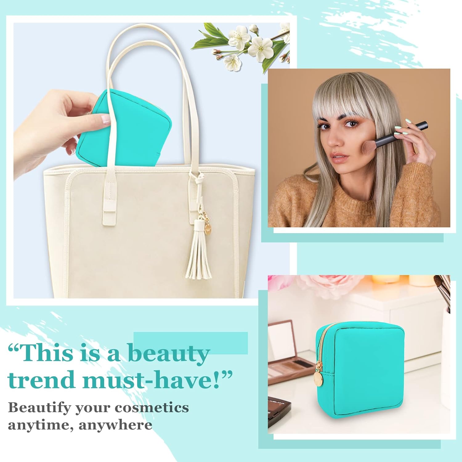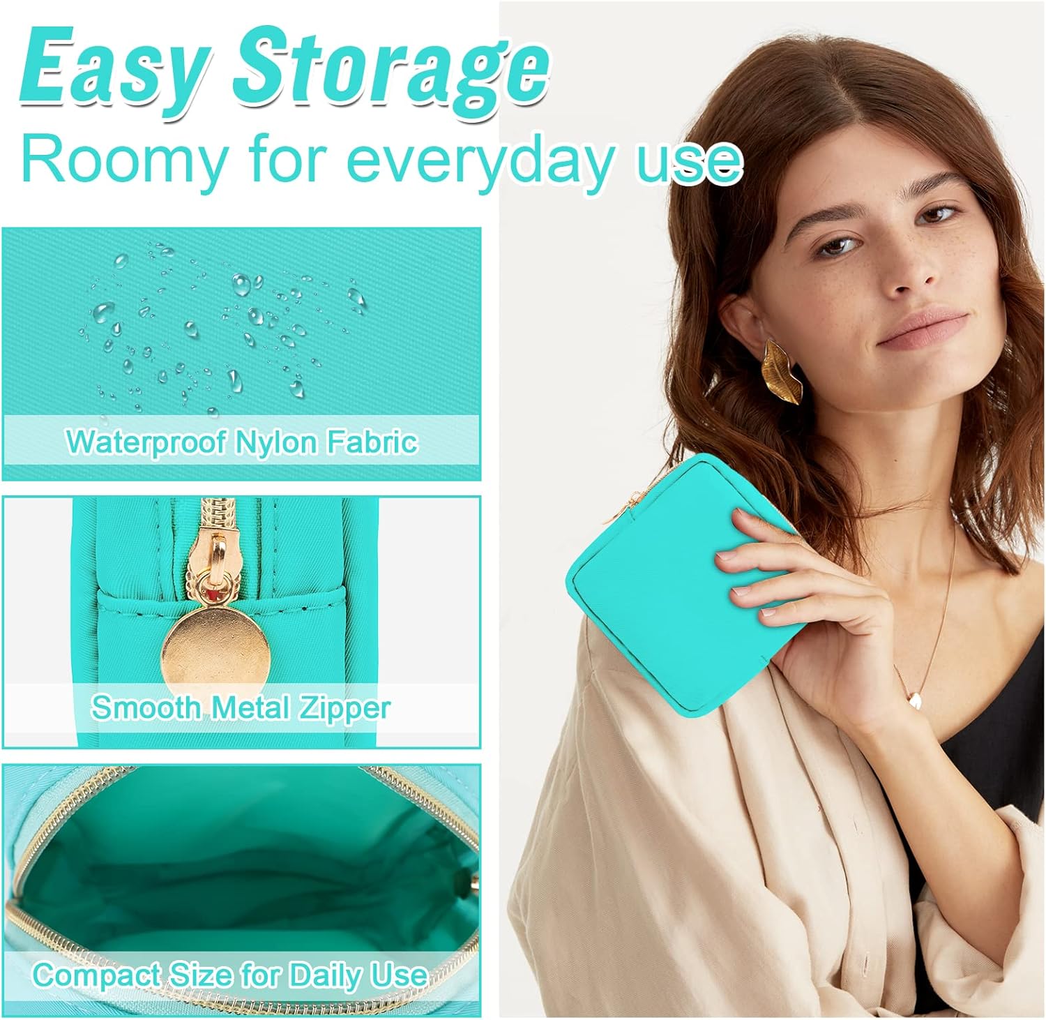 Nylon Mini Makeup Bag for Purse, Preppy Small Cute Makeup Bag Cosmetic Zipper Pouch Purse, Waterproof Travel Coin Pouch Sanitary Napkin Storage Bag Clutch Make Up Organizer for Women Men Girls(Mint)