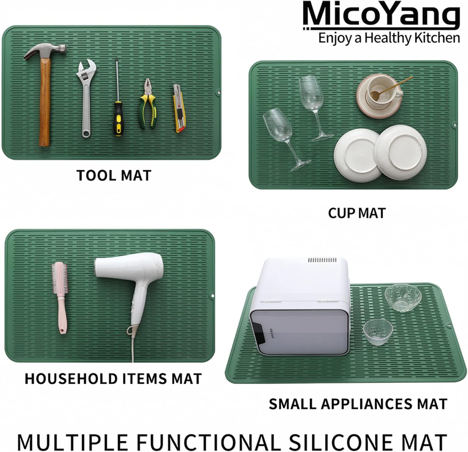 Silicone Dish Drying Mat for Multiple Usage,Easy clean,Eco-friendly,Heat-resistant Silicone Mat for Kitchen Counter or Sink,Refrigerator or Drawer Liner Green 3XL 28 inches x 18 inches