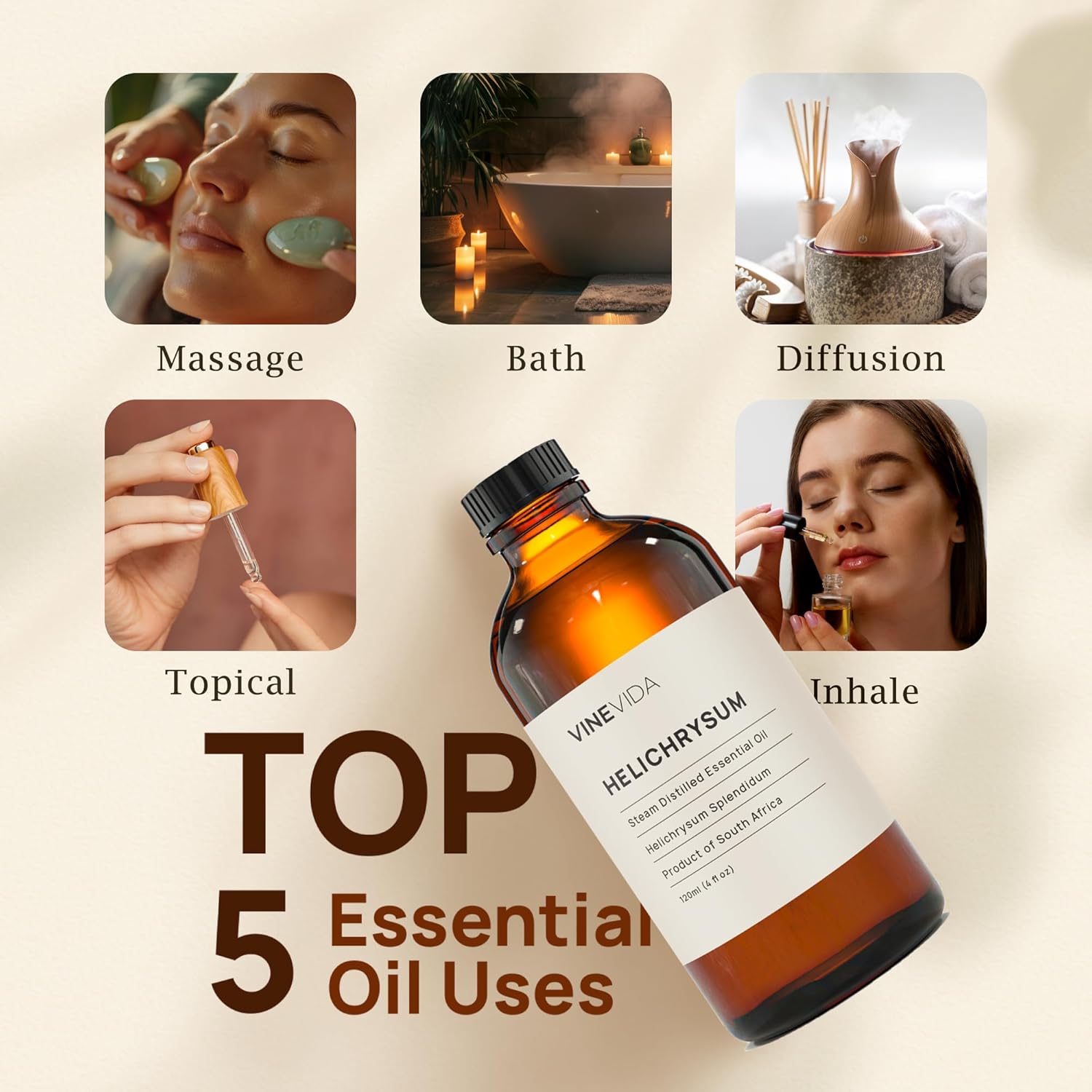 VINEVIDA Helichrysum Essential Oil 4 oz - Undiluted, Pure, Vegan, and Sustainable