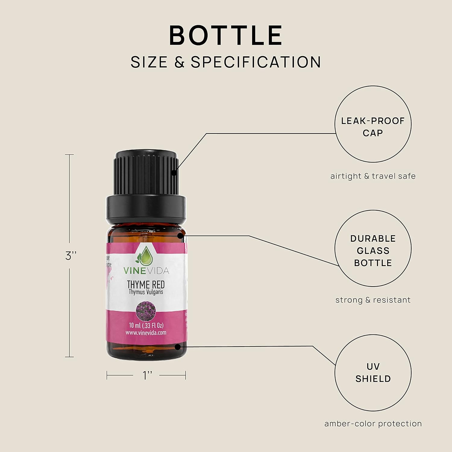 VINEVIDA Red Thyme Essential Oil 10 mL - Undiluted Candle Scent DIY Scents for Candlemaking Soap Making Safe Skin, 1.33 Ounces