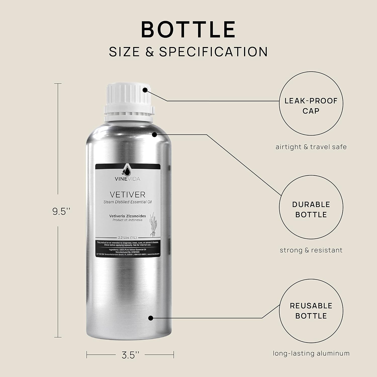 VINEVIDA Vetiver Essential Oil 32 oz - Undiluted Vetiver Oil 32 oz - Vetiver Candle Oil Scent - DIY Candle Scents for Candlemaking - Bulk Essential Oil for Soap Making Safe for Skin 946.36 ml