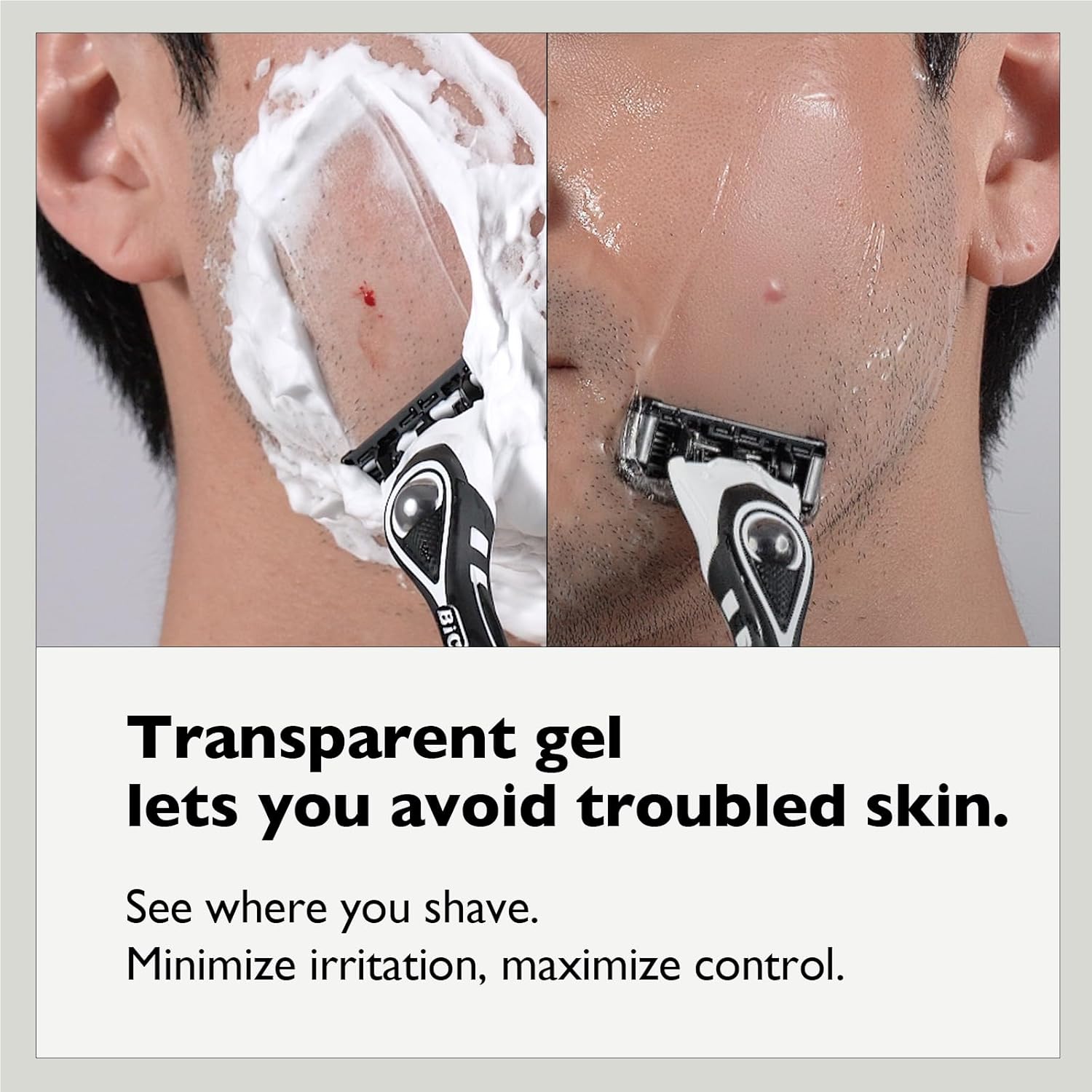 - Why shave with foaming shaving type? Its transparent shaving gel provides stronger protection against razor blades and better cleaning shave. It also has a skin soothing effect against various skin problems, make a possible for a much more comfortable shave.