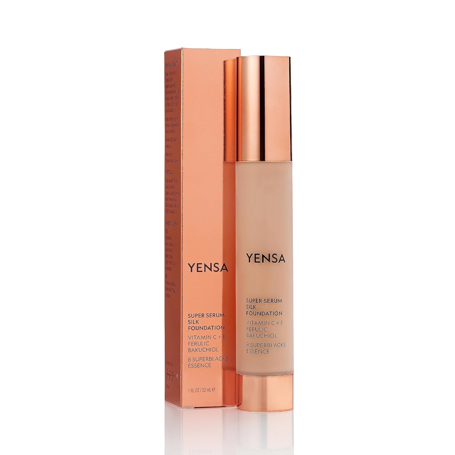 YENSA Serum Foundation Makeup - Super Silk Full Coverage Foundation Enriched with Peptides, Vitamin C & Ferulic Acid to Help Reduce Fine Lines, Wrinkles & Dark Circles - Fair 2 (1 oz)