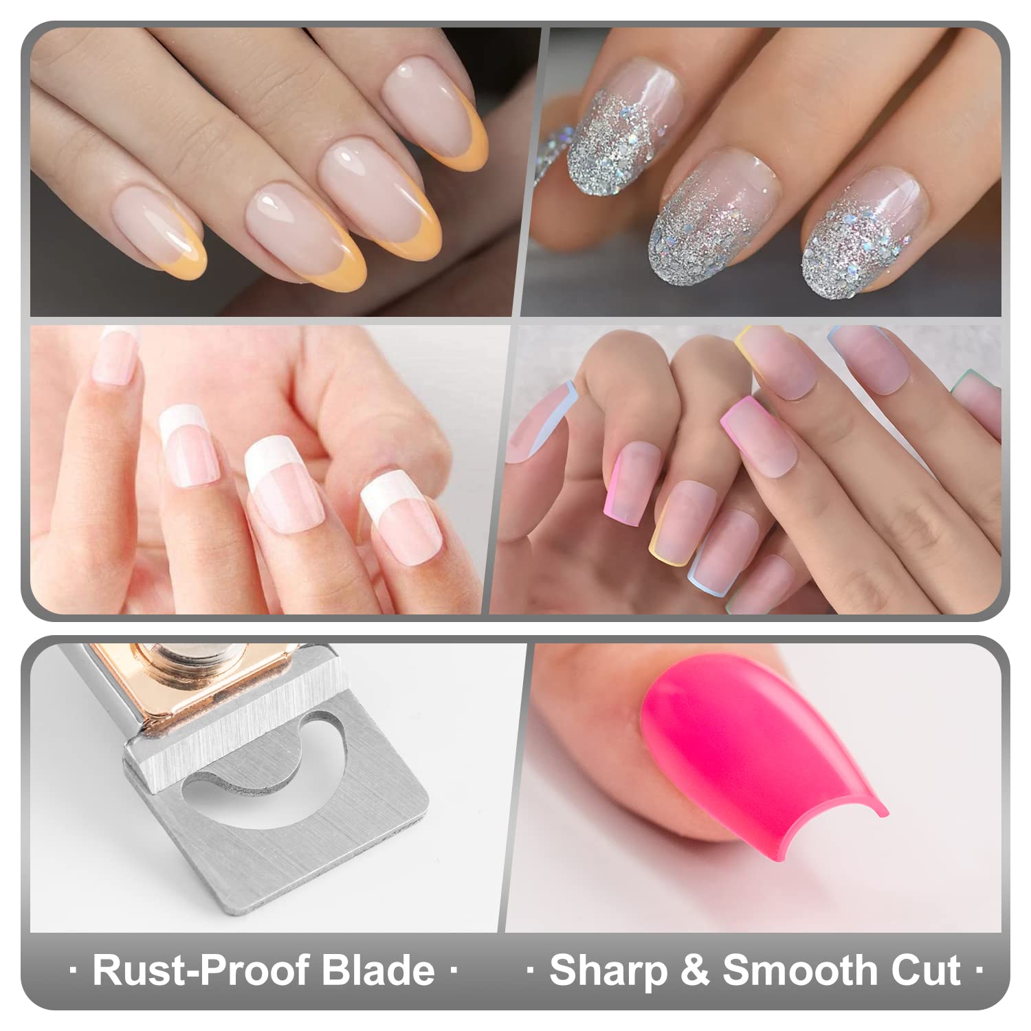 - ❤Sharp Blade and Smooth Nails -- Cut acrylic nails quickly and smoothly with this sharp-bladed and strong-springed clipper. The comfortable handle and safe edge design makeS cutting nail tips a breeze.