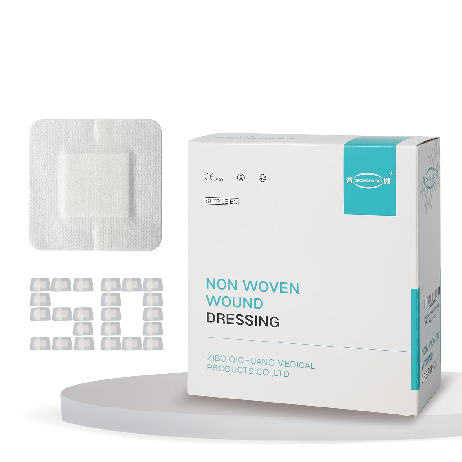 4X4 Inches Large Sterile Adhesive Island Wound Dressing Bandages - Non Woven Cover with Bordered Gauze Pads,50 Individually Pack, High Absorbent, Medical Grade by QICHUANG(4X4INCHES-C50)