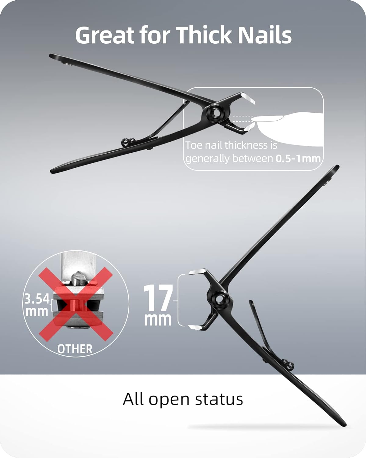 - Oversized 17mm Wide Mouth Toenail Clippers for Seniors Thick Toenails : Our heavy duty nail clippers for thick nails, acrylic nails and ingrown toenails & tough fingernails.