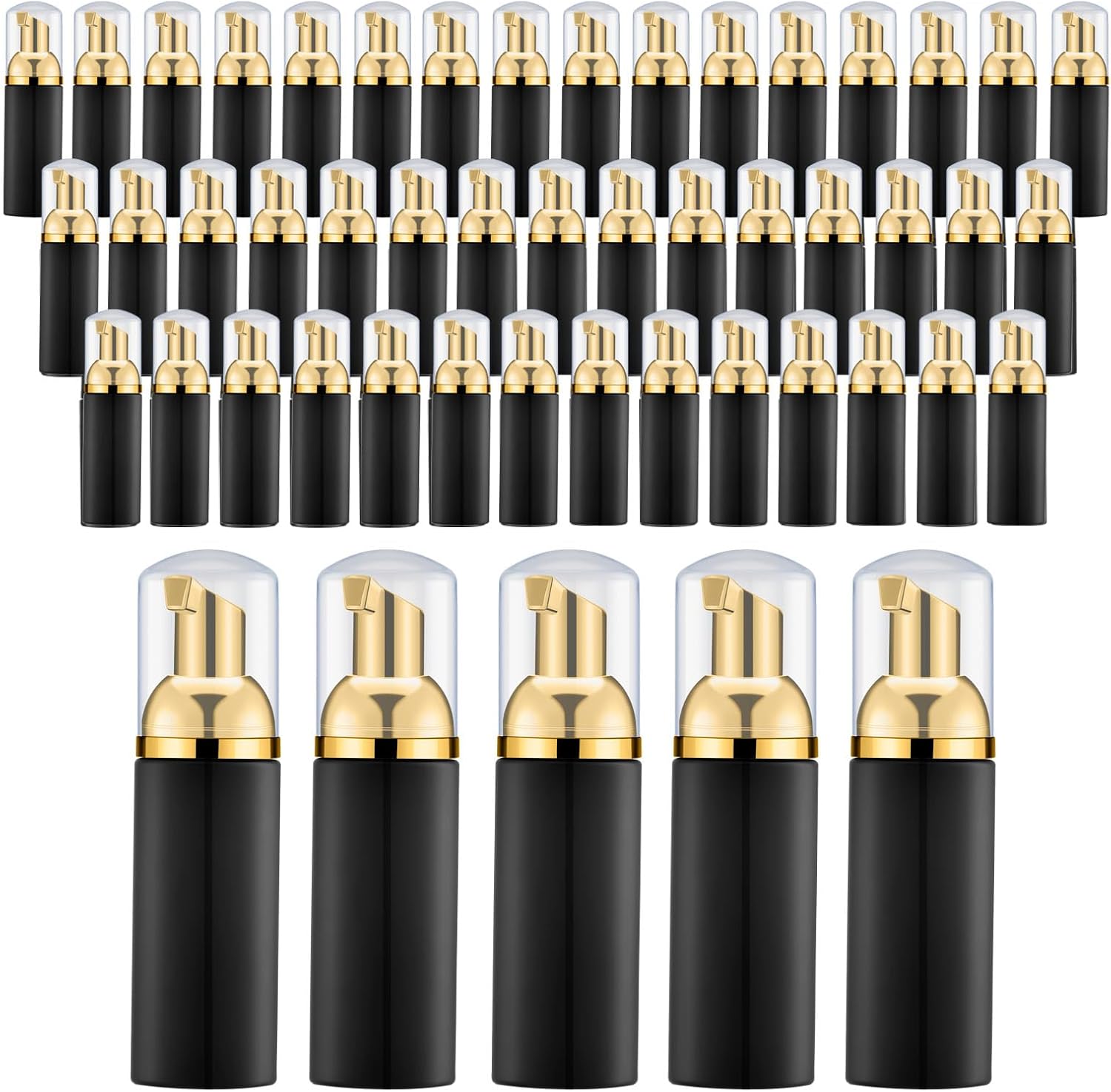 KOIBITO 2 Oz Black Foam Pump Bottle, Empty Lash Shampoo Bottles, Travel Foaming Dispenser for Hand Soap,Body Wash(50 PCS, Clear Cap)