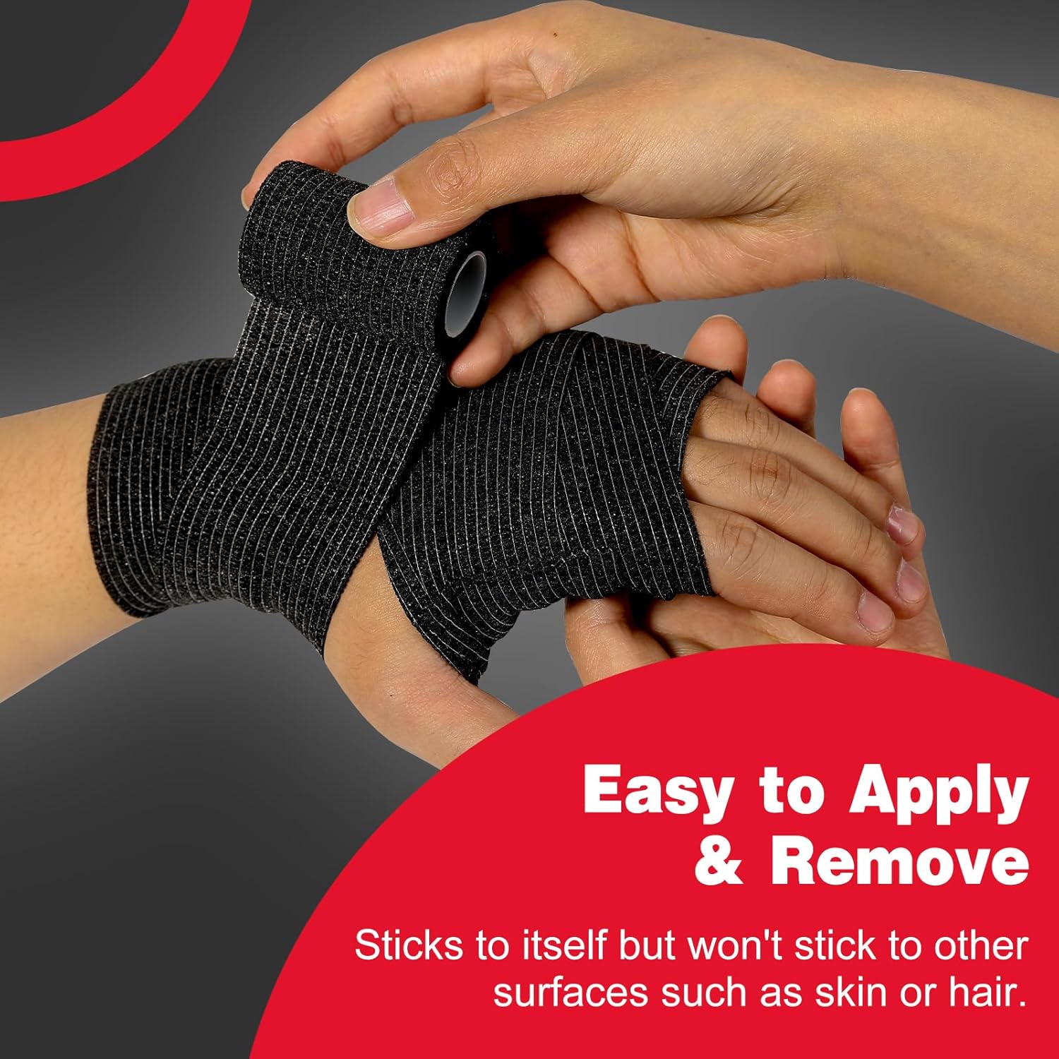 - Self Adhesive Bandage: Package includes 16 rolls of black self adhesive bandage wrap. Each roll measures 2 inch wide and 5 yards long after stretching. It easily adheres to itself but will not stick to other surfaces such as skin or hair, making it easy to pull off and change bandages