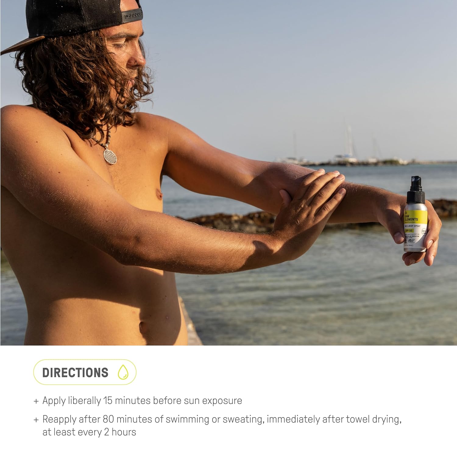 Raw Elements Face + Body Spray SPF 50 All-Natural Mineral Sunscreen - Reef Safe, Water Resistant, Broad Spectrum UVA/UVB Protection, Safe For All Ages, Travel Size 2oz