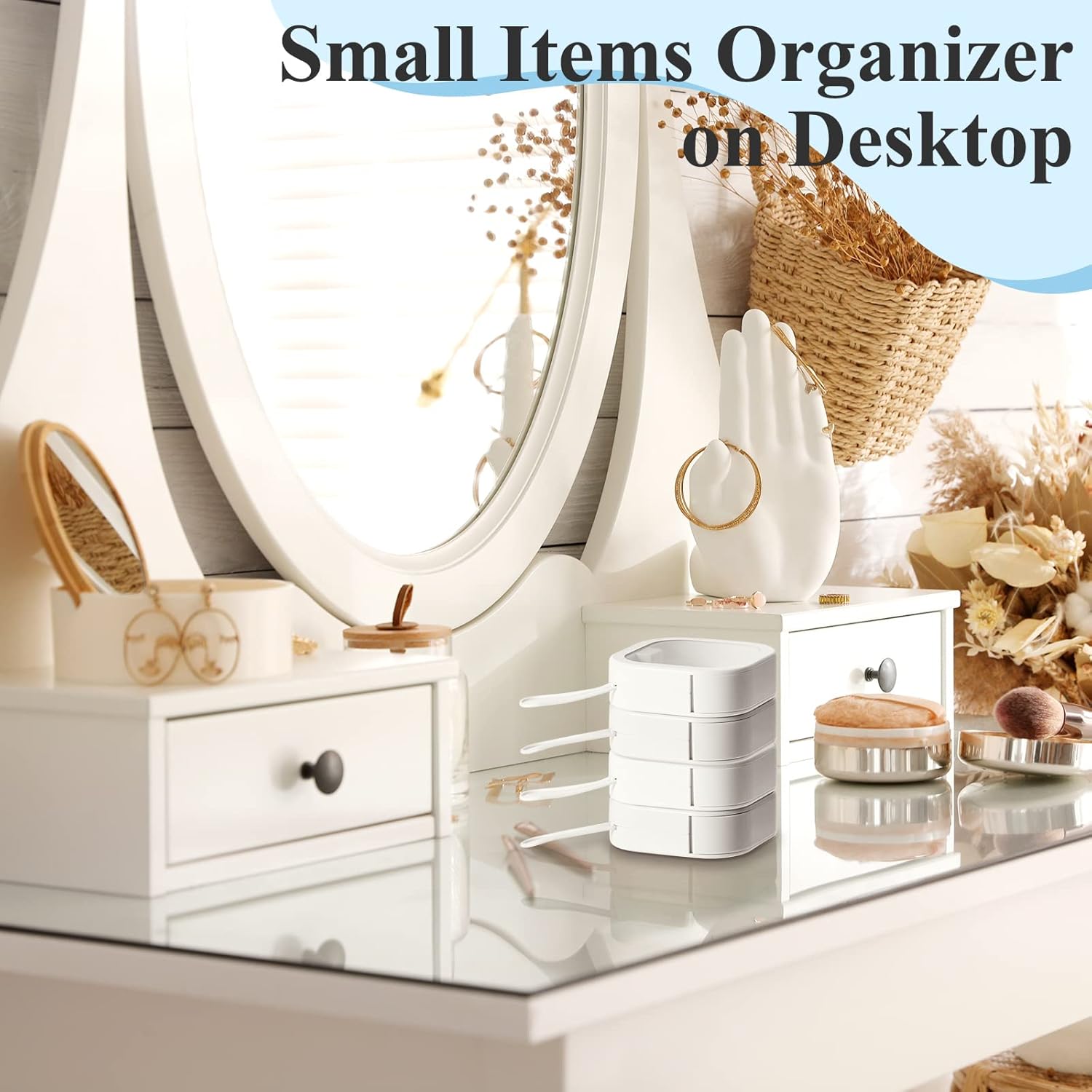 Kathfly 4 Pcs White Hair Tie Organizer Portable Hair Accessory Storage Containers Stackable Tie Bobby Pin Holder Home Cotton Swab Dispenser Accessories Jewelry Organizer Box