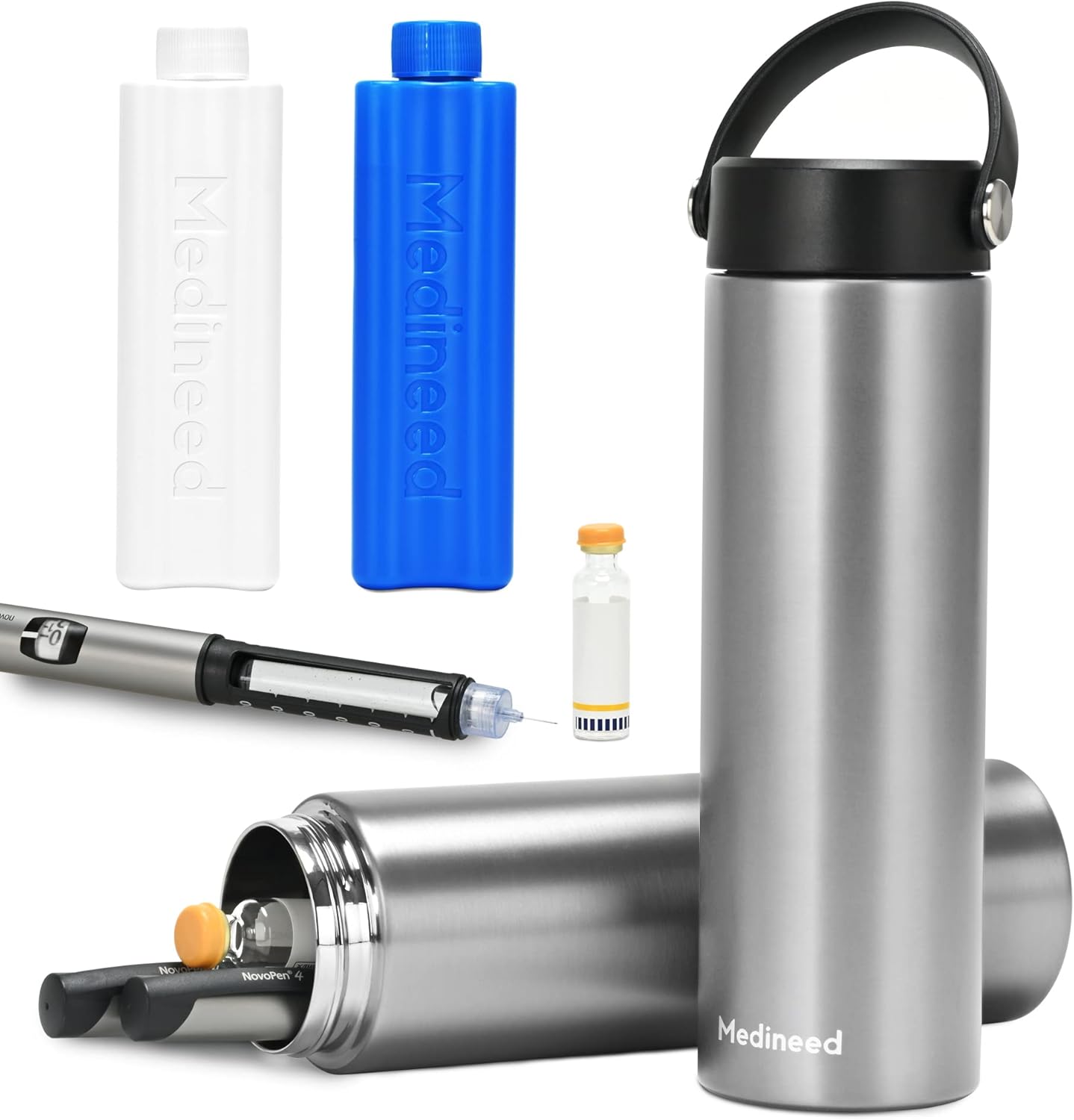 - GOOD COOLING: MEDINEED insulin cooler travel case solve the problem of refrigerating medications on the go; Biogel ice pack has great cooling capacity, even if at an ambient temperature of 105â, ensuring that insulin would keep the temperature at 36-45â for 28 hours