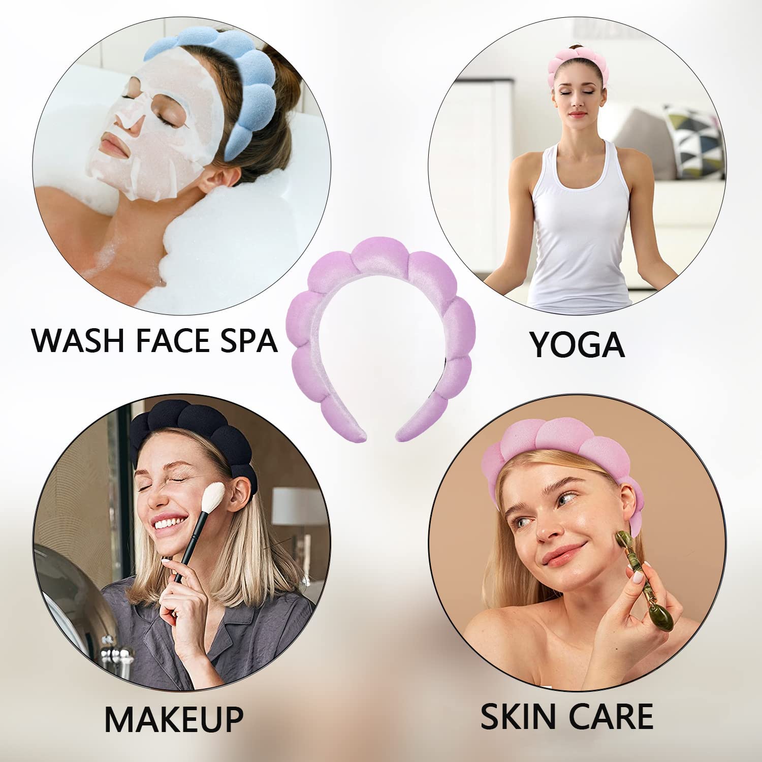 - SPA MAKEUP HEADBAND ďźMade with sponge lining and terry cloth covering, this spa headband is soft and comfortable without squeezing the head to wear while keeping hair away from the face.