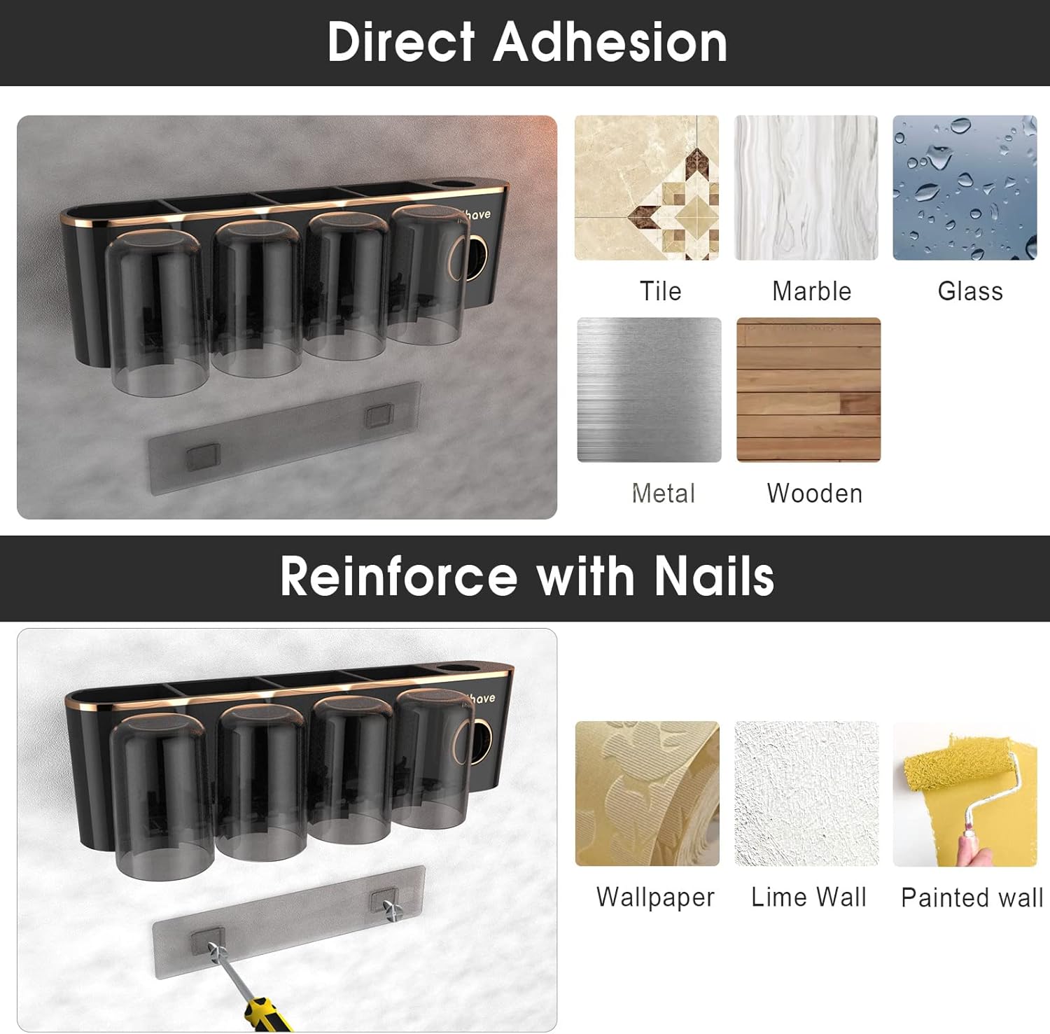 - Multifunction: This toothbrush holder bathroom organizer comes with a toothpaste dispenser, so you can easily squeeze toothpaste without wasting it. The wall-mount toothbrush holders with upside-down cups are dust-proof and waterproof.