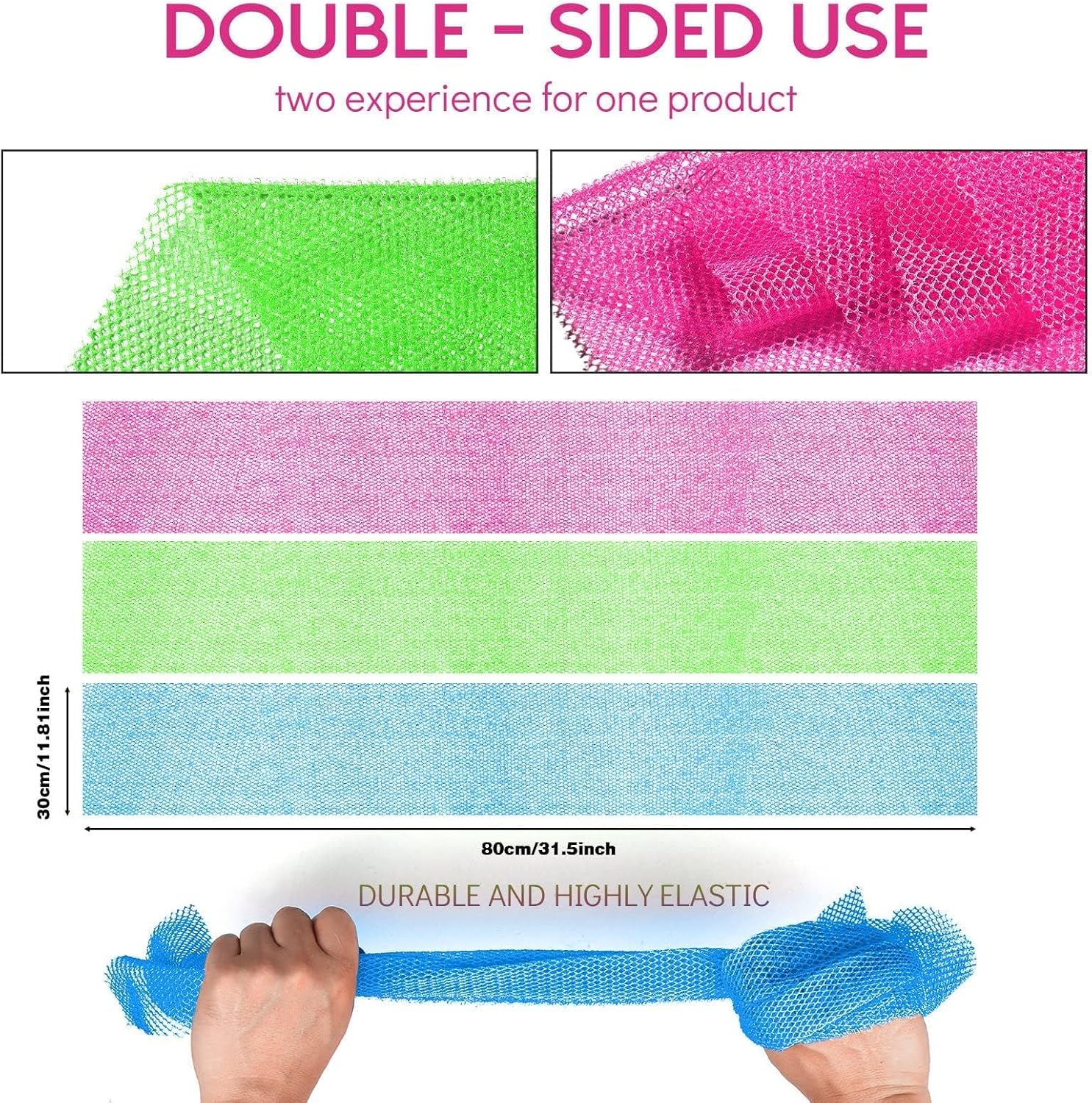 - 【Good rebound and stretch】The african net sponge is approx. 11.8 inches/ 30 cm in width, 31.4 inches/ 80 cm in length, and it is elastic and stretchable that will be longer after being stretched, great for washing all areas of the body without dead corner including the back, hands and feet.