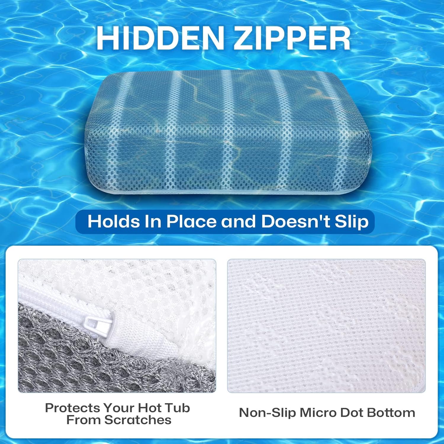 Hot Tub Cushion Pillow for Indoor or Outdoor Use, 16 x 12 x 4.3 Inche Weighted Spa Pillow with Washable 4D Mesh Cover & Non-Slip Micro Dot Bottom, Hot Tub Accessories for Adults,Quick Dry, Grey