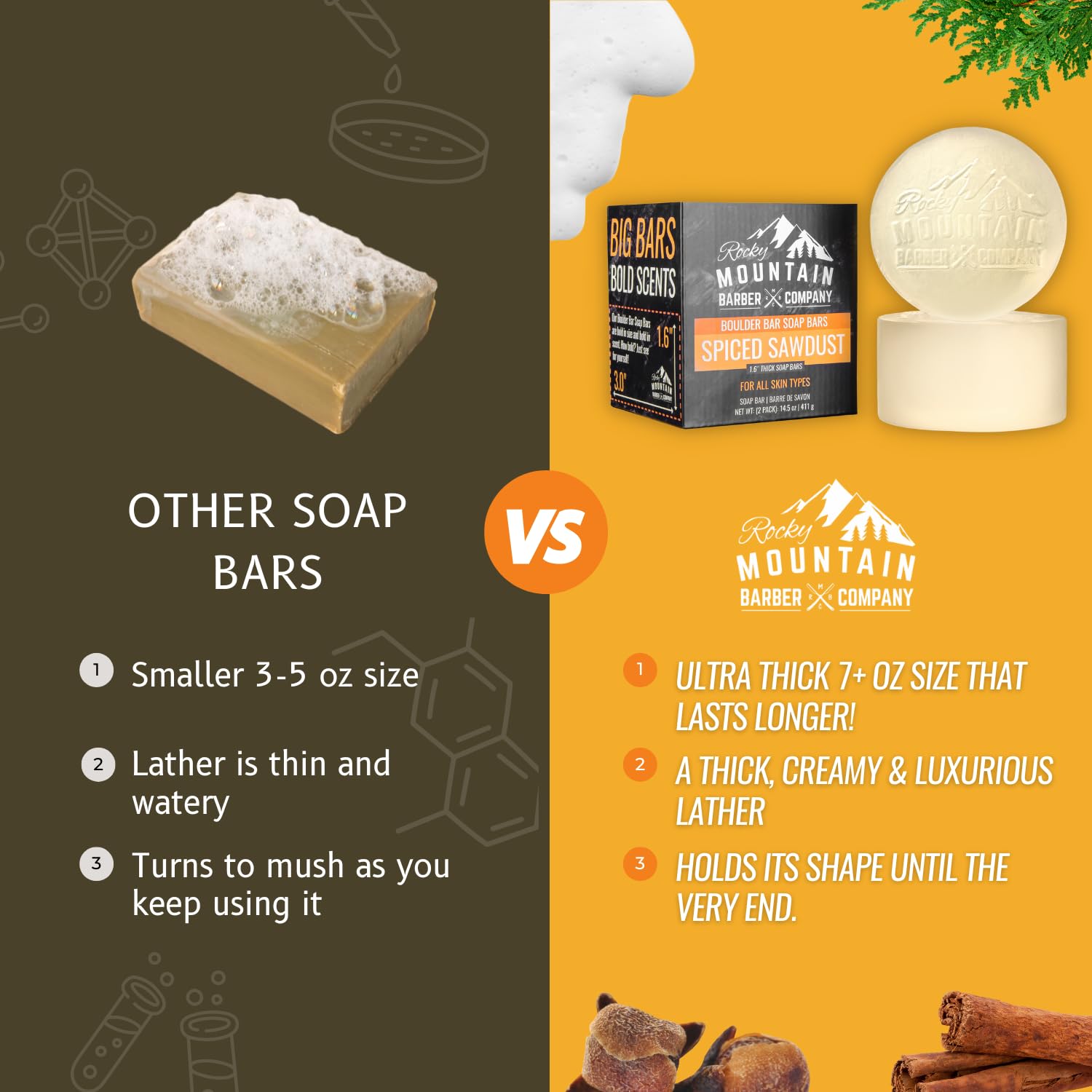 - Includes Two 7.25 oz Soap Bars For Head to Toe Coverage - Our Boulder Bar Soaps are the ultimate multi-taskers, suitable for hair, beard, face, skin and all your body's adventures. Our two soap bars give you nearly 15 oz of soap cleaning coverage and last 2x longer than typical 3 oz soap bars.
