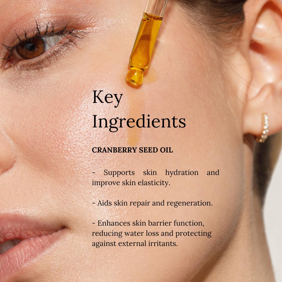 - 🌿 𝗛𝗬𝗗𝗥𝗔𝗧𝗜𝗡𝗚 𝗣𝗢𝗪𝗘𝗥𝗛𝗢𝗨𝗦𝗘: Cranberry seed oil is a natural and powerful moisturizer that keeps your skin hydrated without feeling greasy. It works great on its own or as an ingredient in homemade skincare products